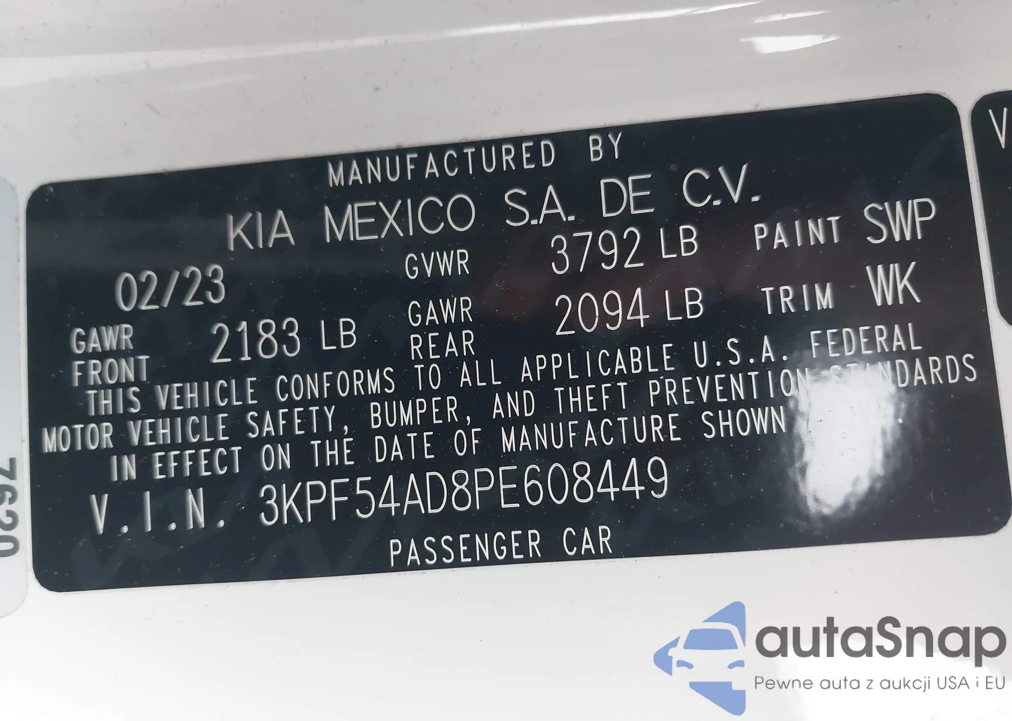 • VIN 3KPF54AD8PE608449