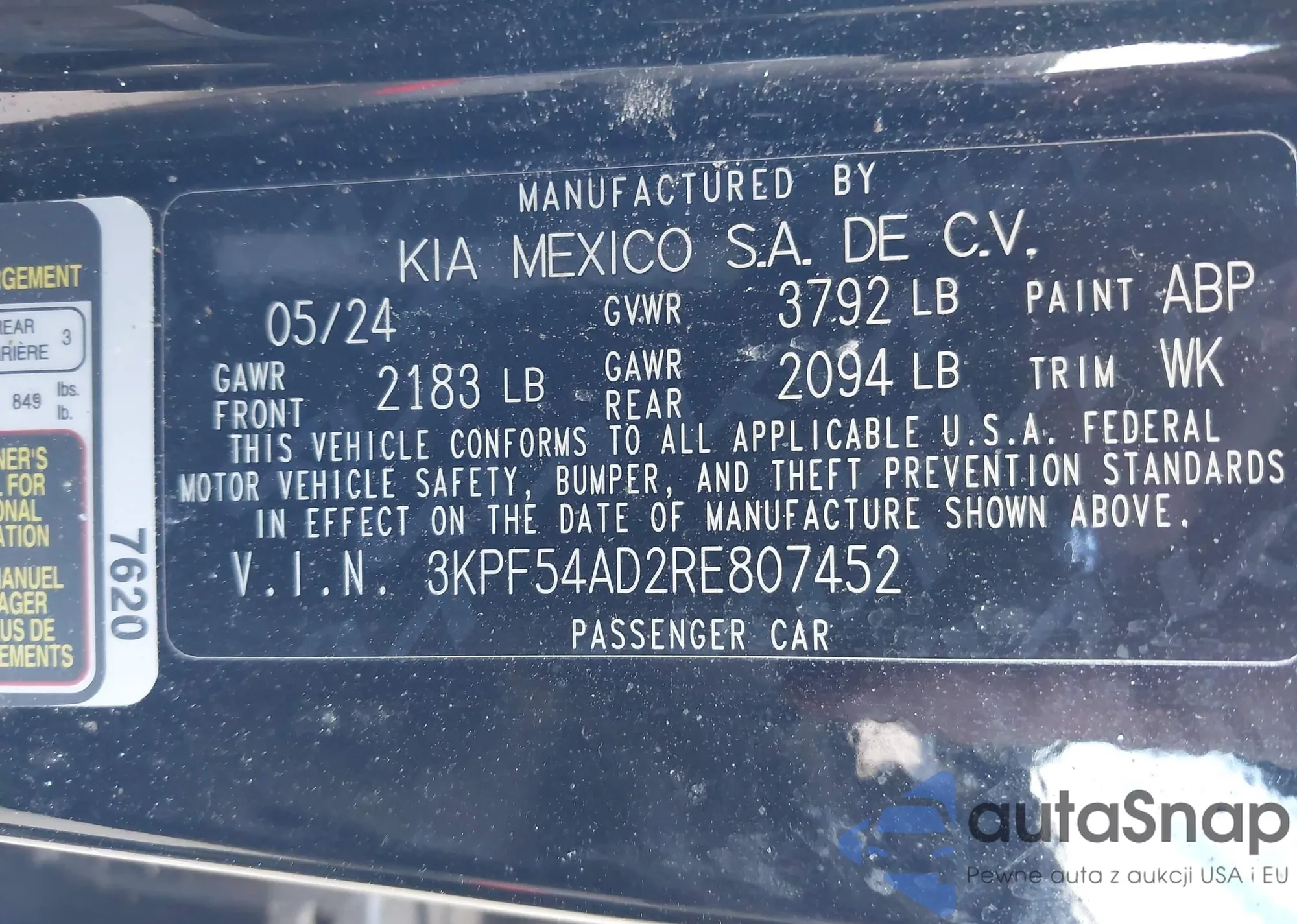 • VIN 3KPF54AD2RE807452