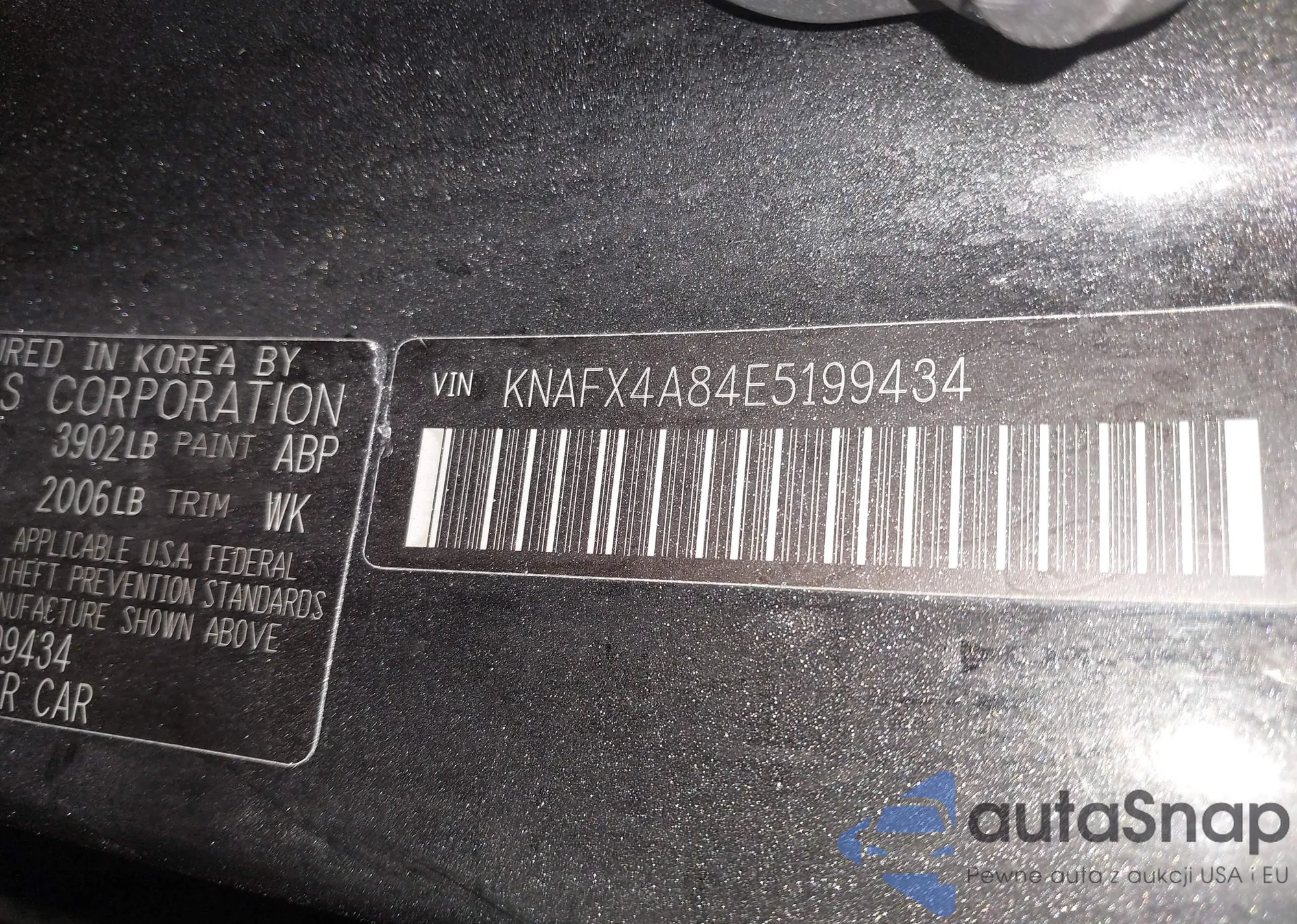 • VIN KNAFX4A84E5199434