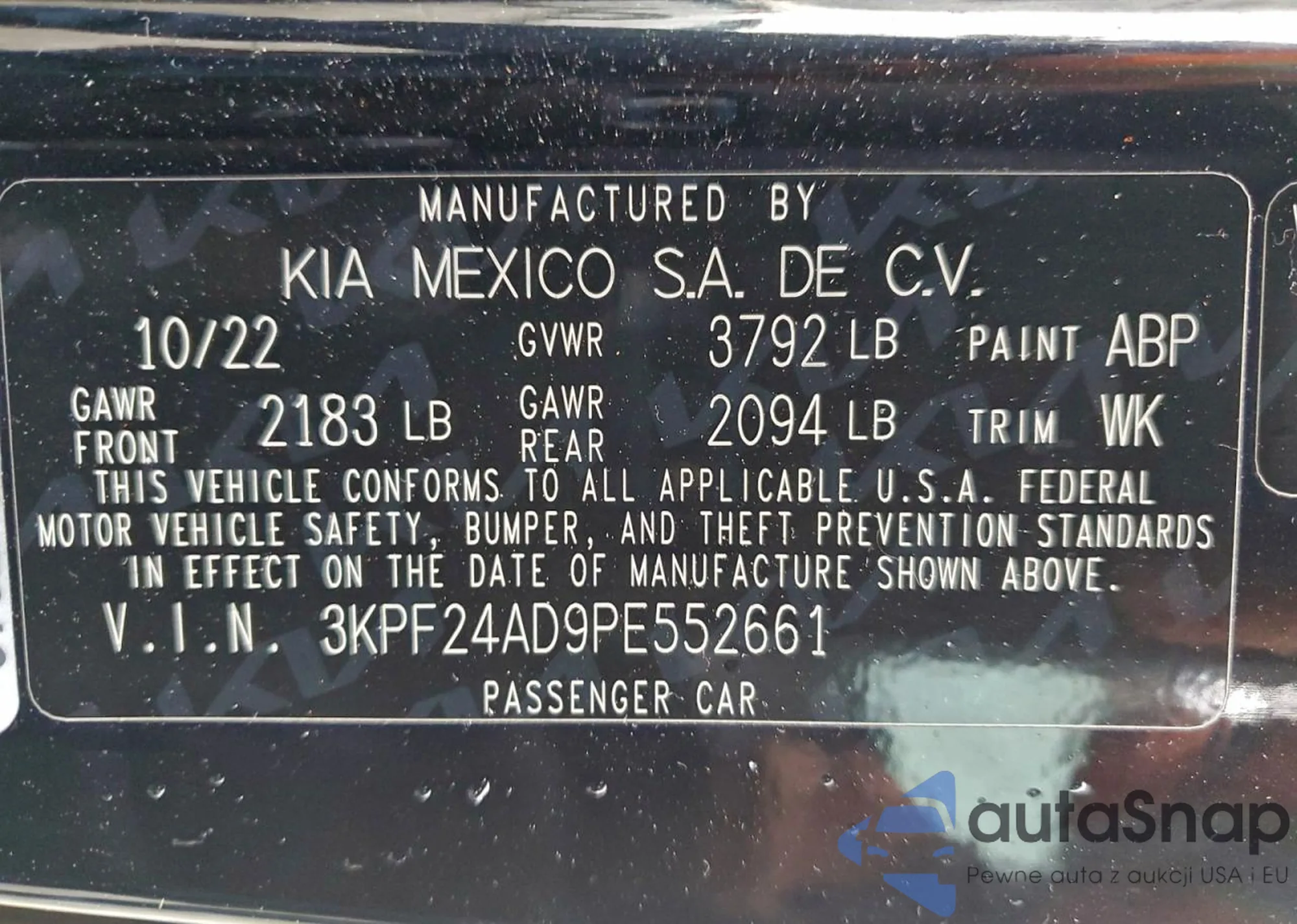 • VIN 3KPF24AD9PE552661