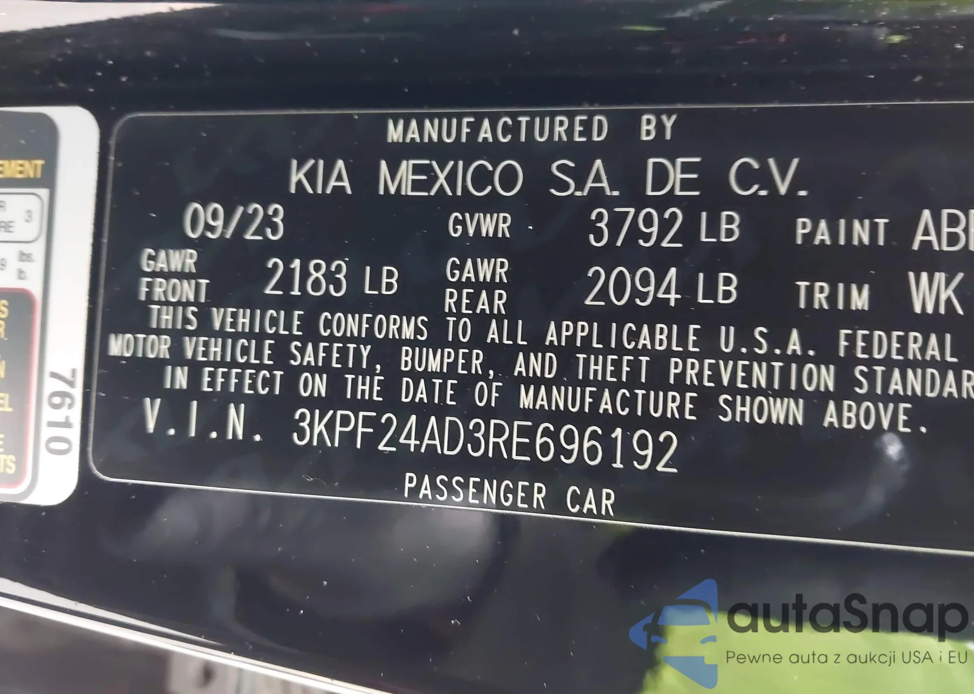• VIN 3KPF24AD9PE625964