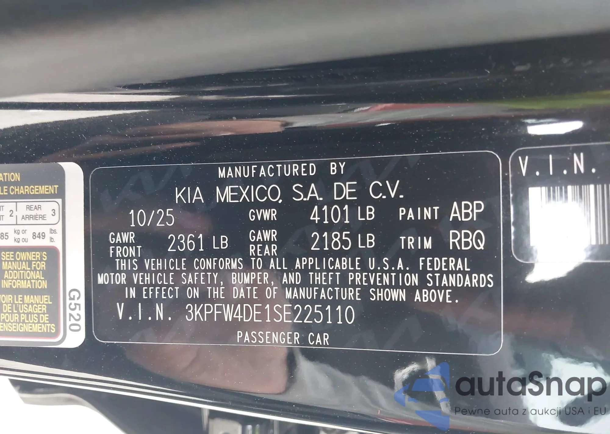 • VIN 3KPFT4DE6SE174955