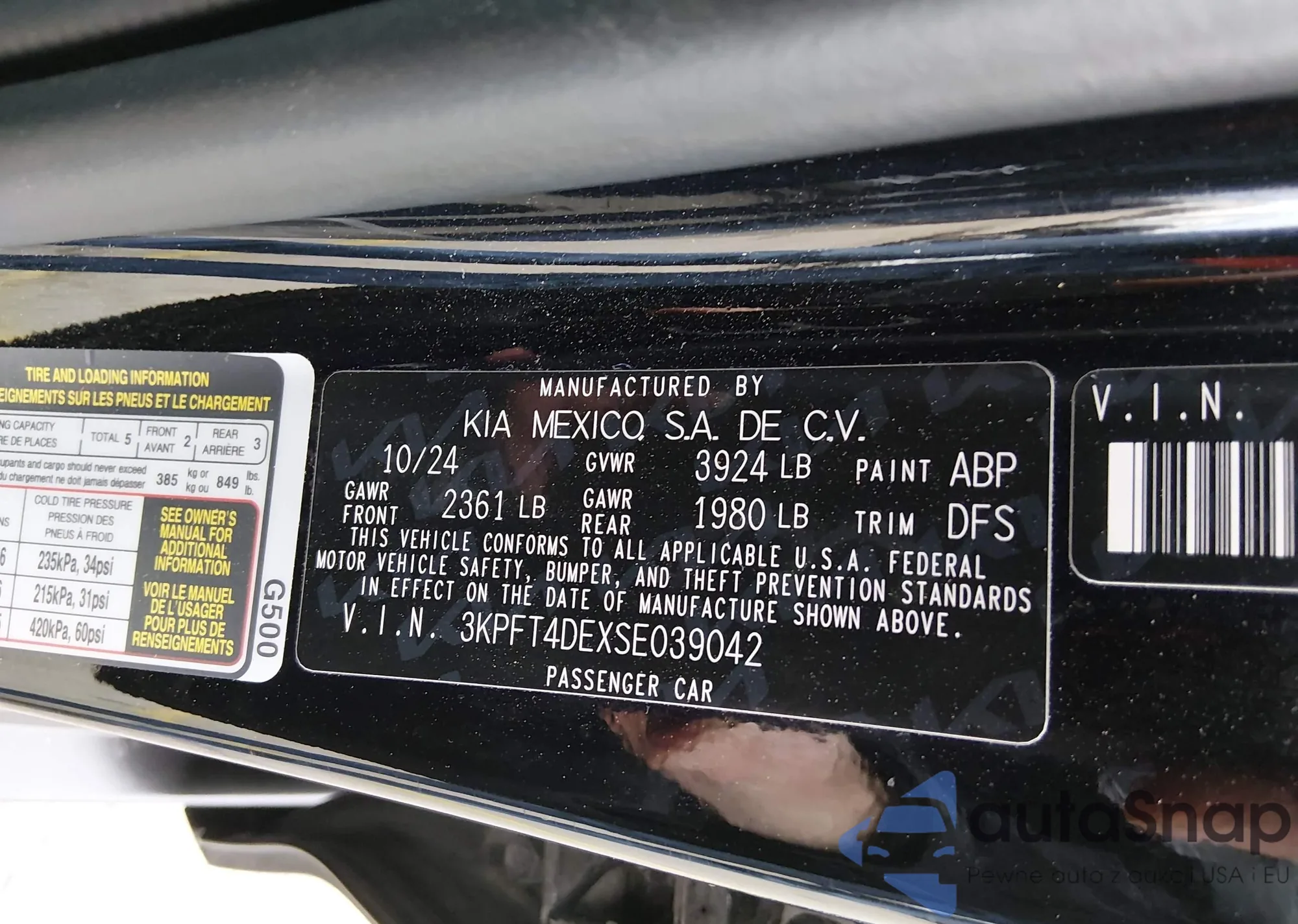 • VIN 3KPFT4DEXSE039042