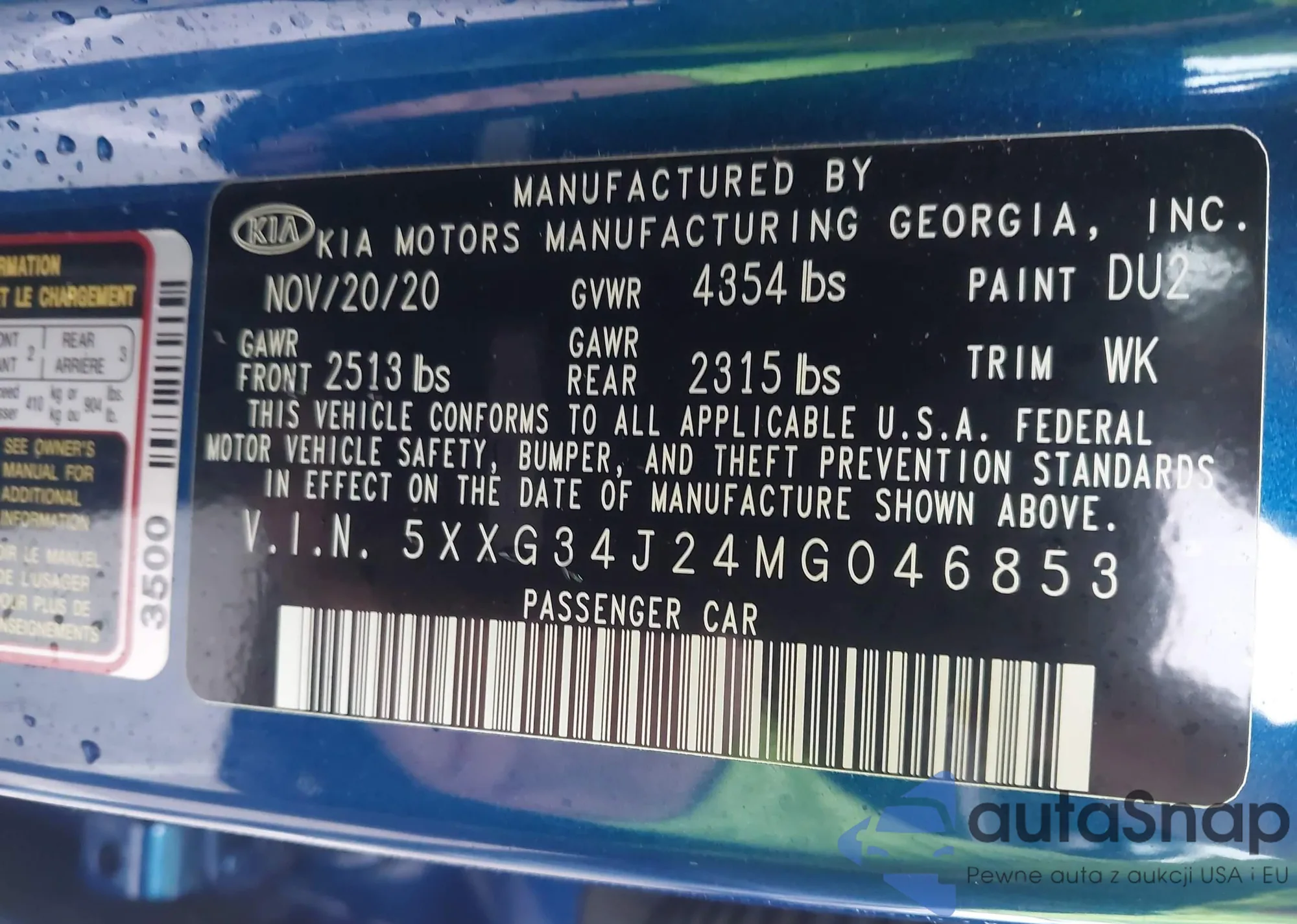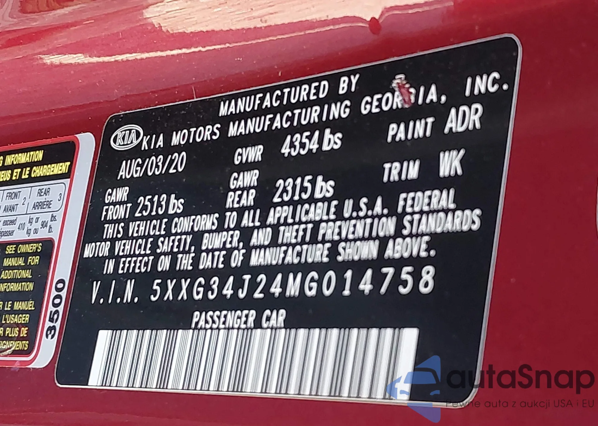 LOT: 41471131 VIN: 5XXG34J24MG046853