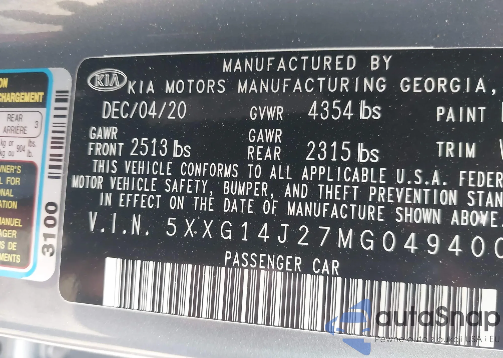• VIN 5XXG14J27MG049400
