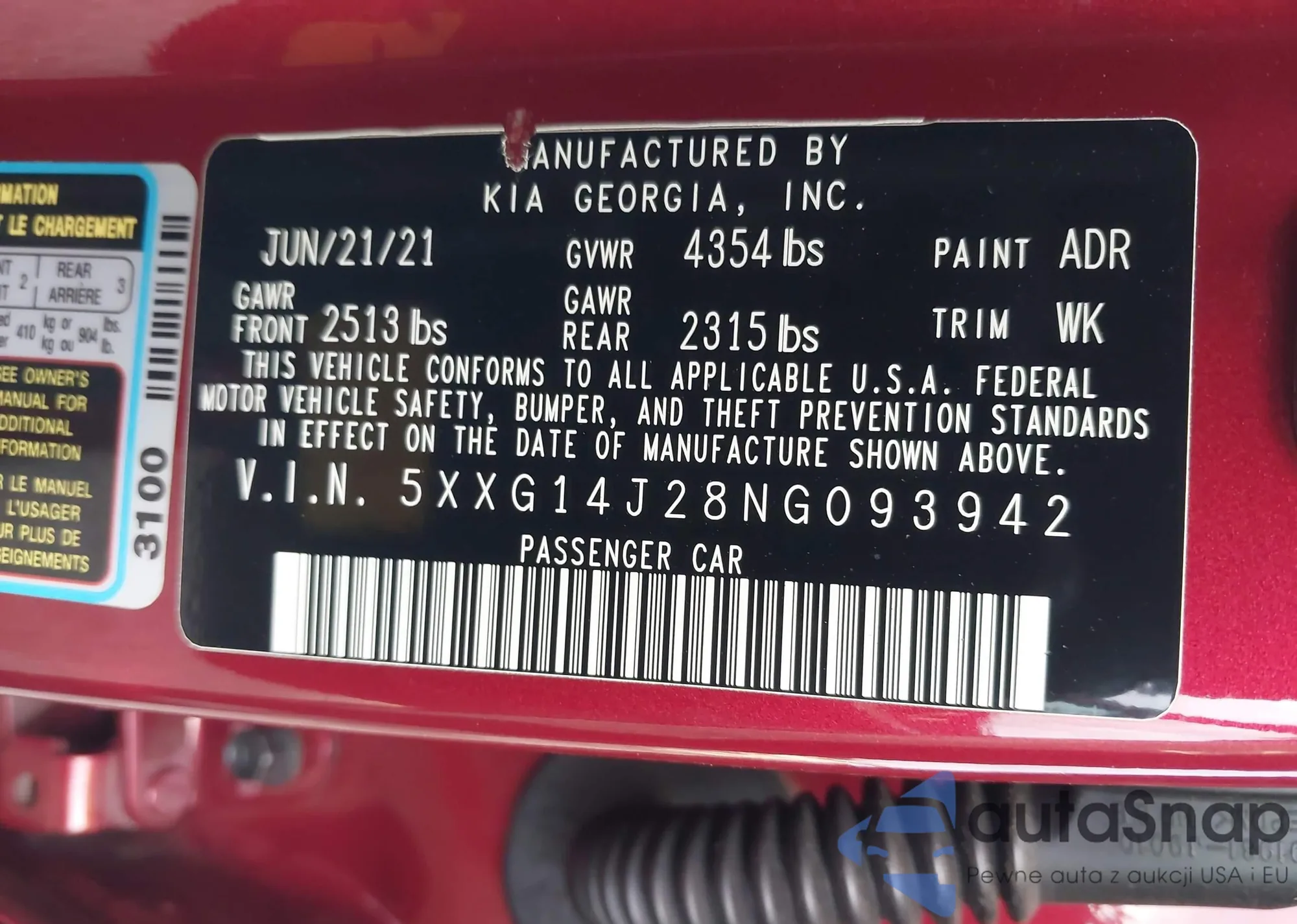 LOT: 40469369 VIN: 5XXG14J26MG026934