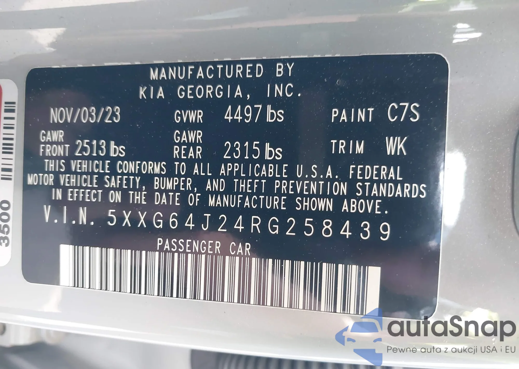 LOT: 44093551 VIN: KNAG64J77S5384992