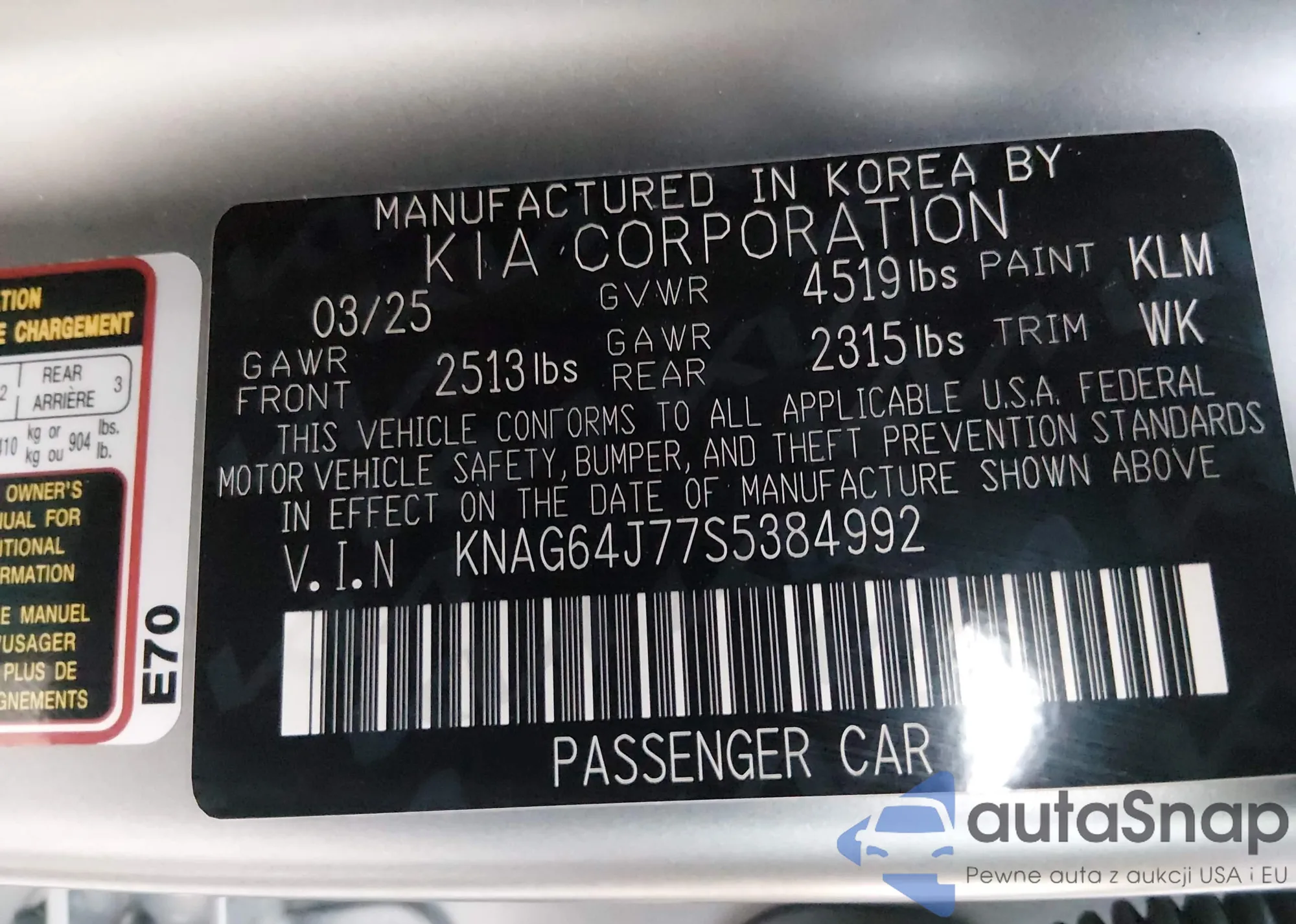 • VIN KNAG64J77S5384992