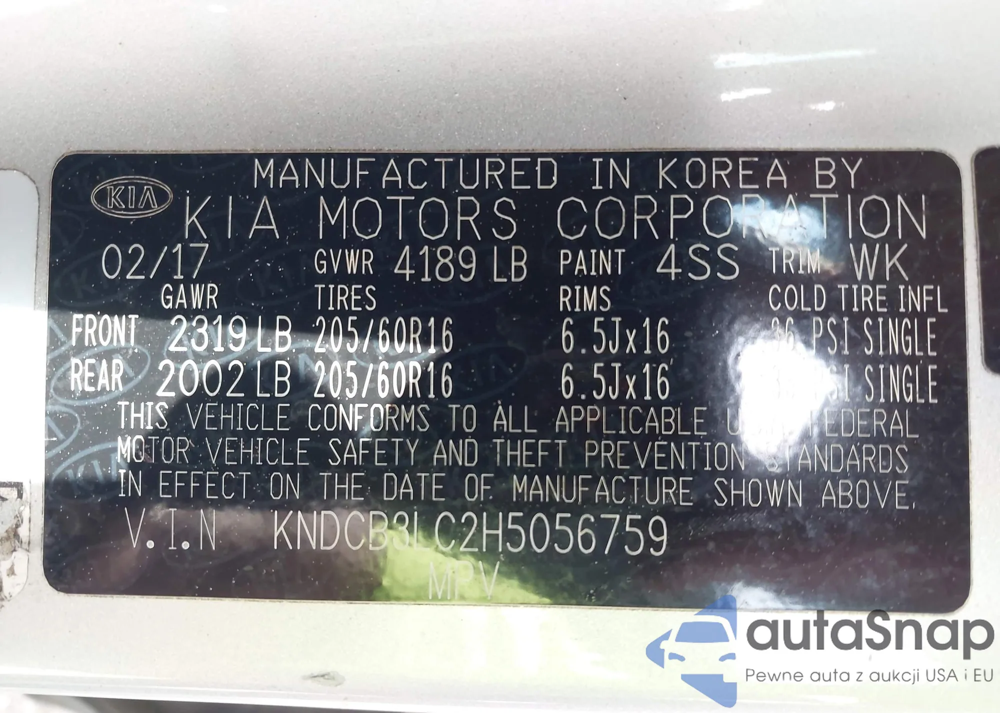 • VIN KNDCB3LC2H5056759