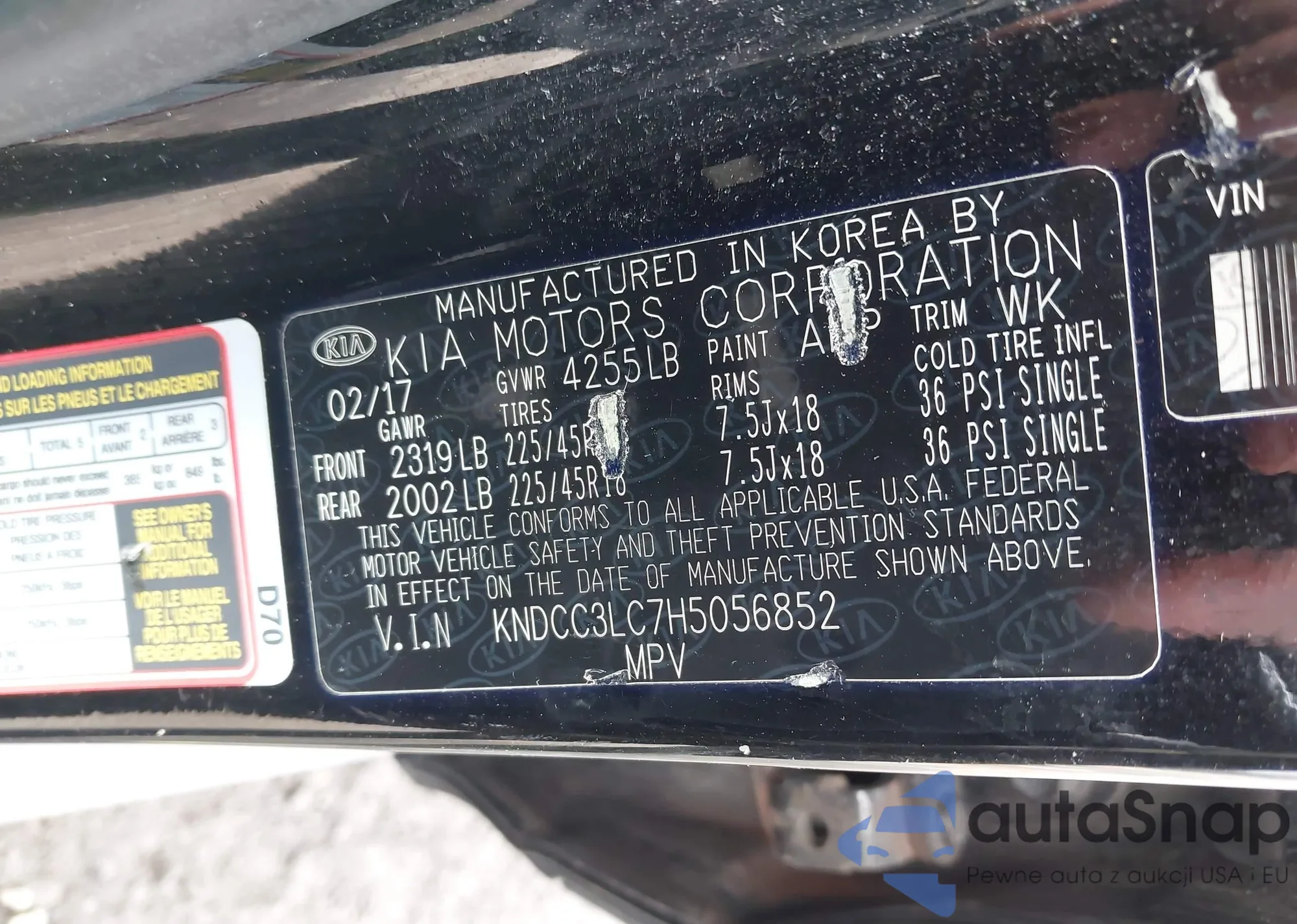 • VIN KNDCC3LC7H5056852