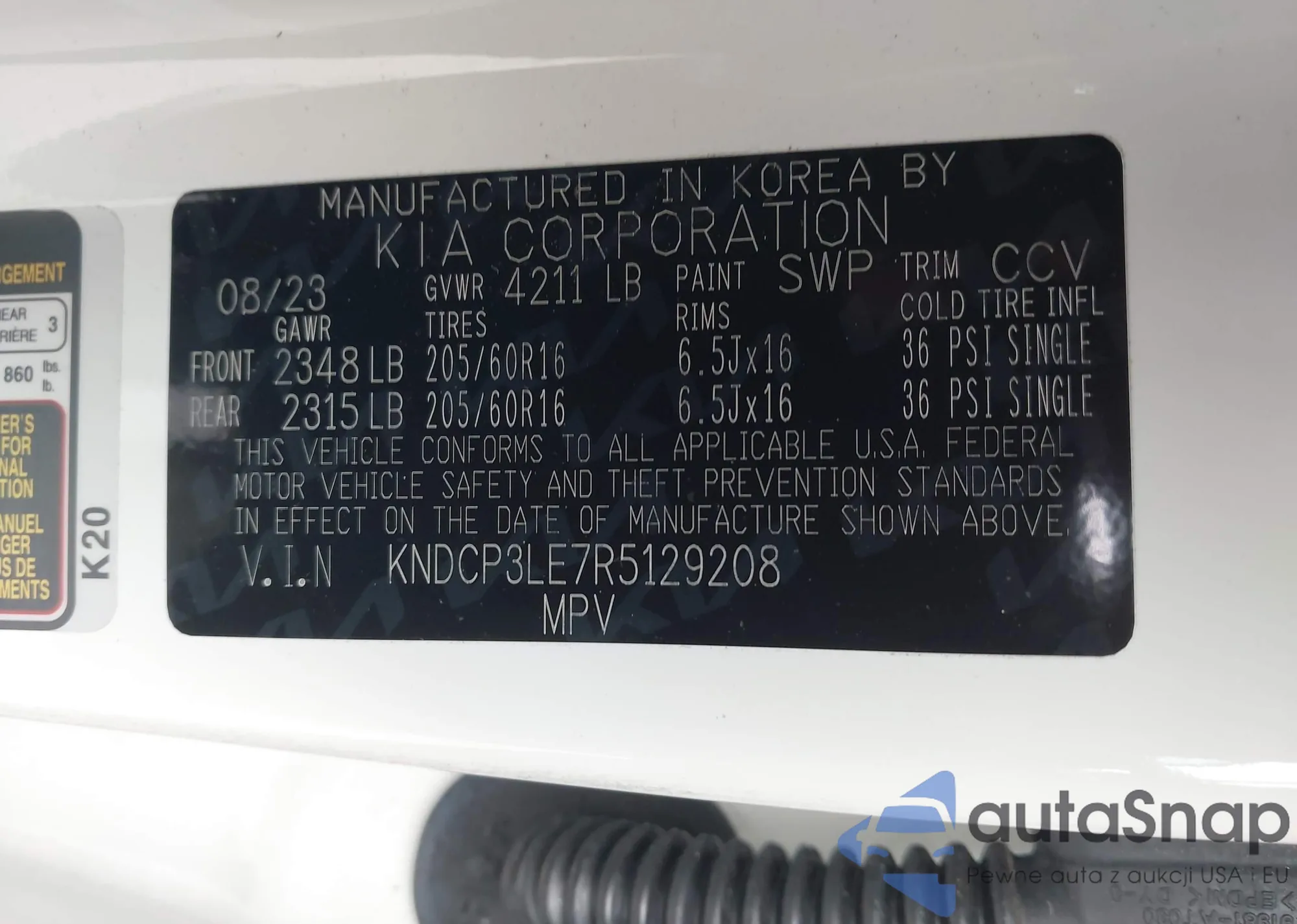 • VIN KNDCP3LE7R5129208