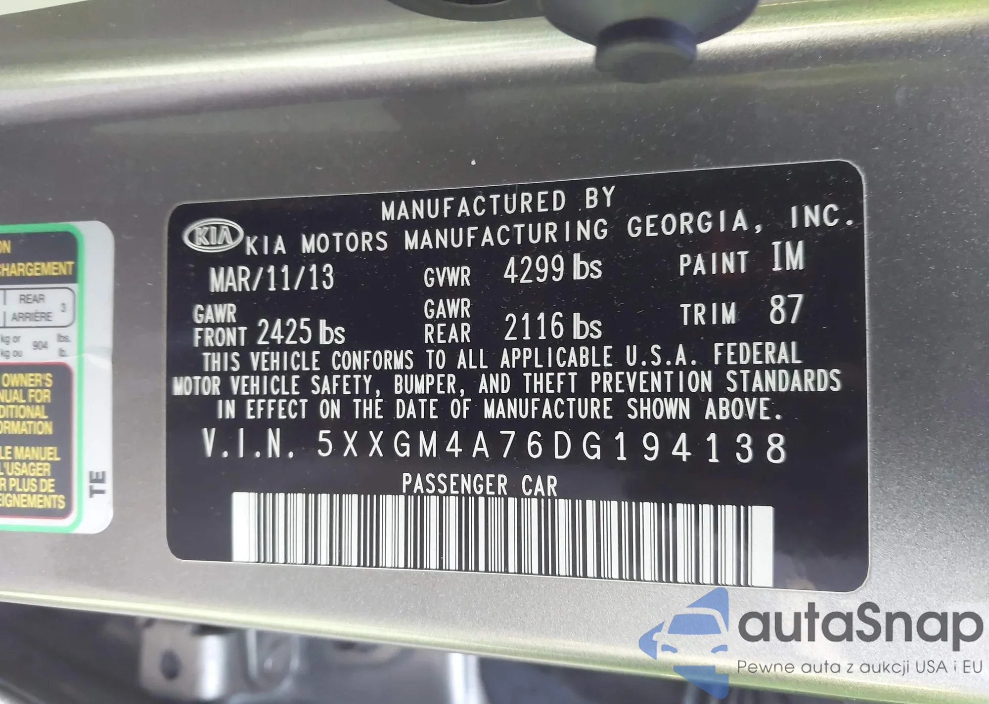 • VIN 5XXGM4A76DG194138