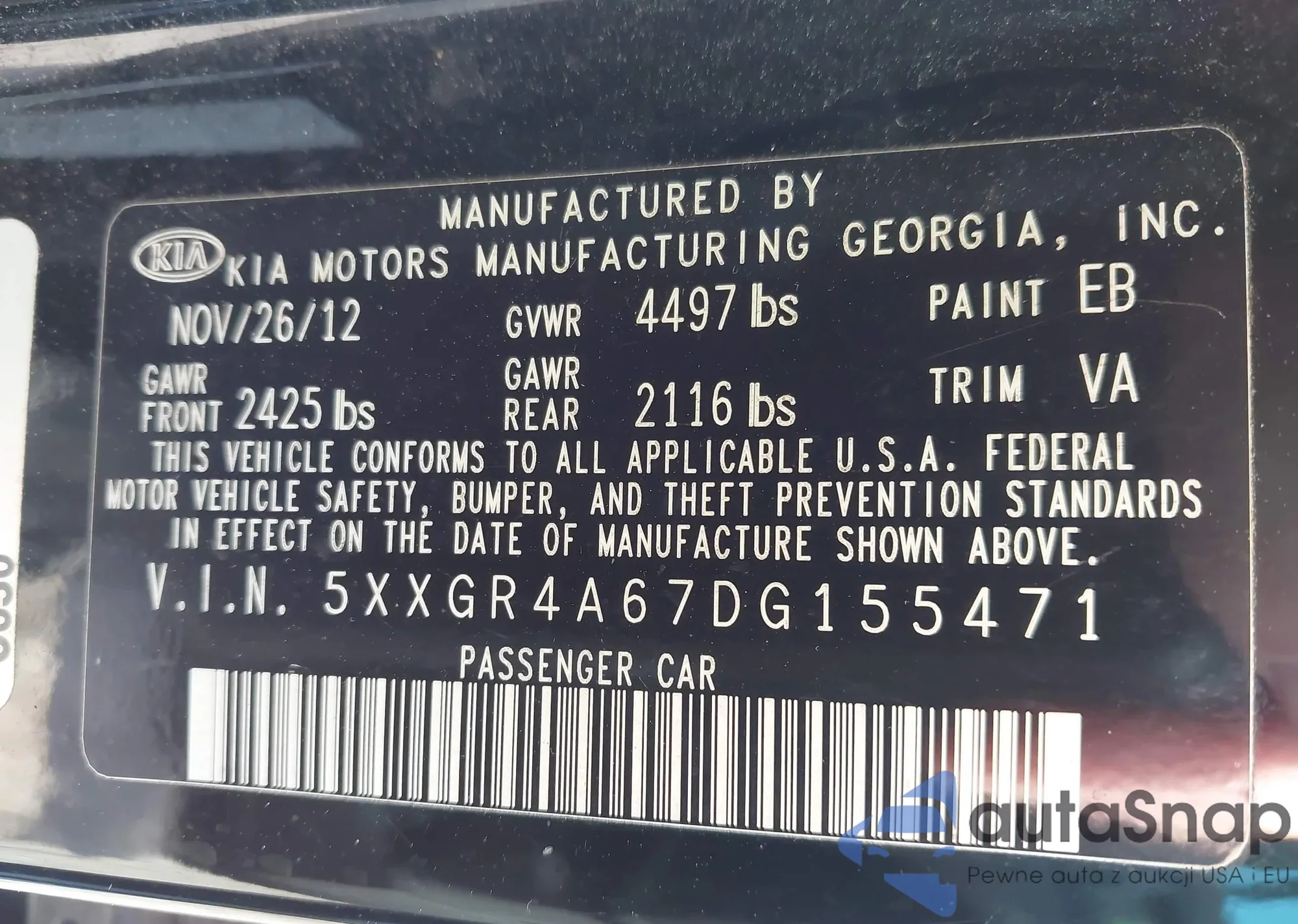 • VIN 5XXGR4A67DG155471