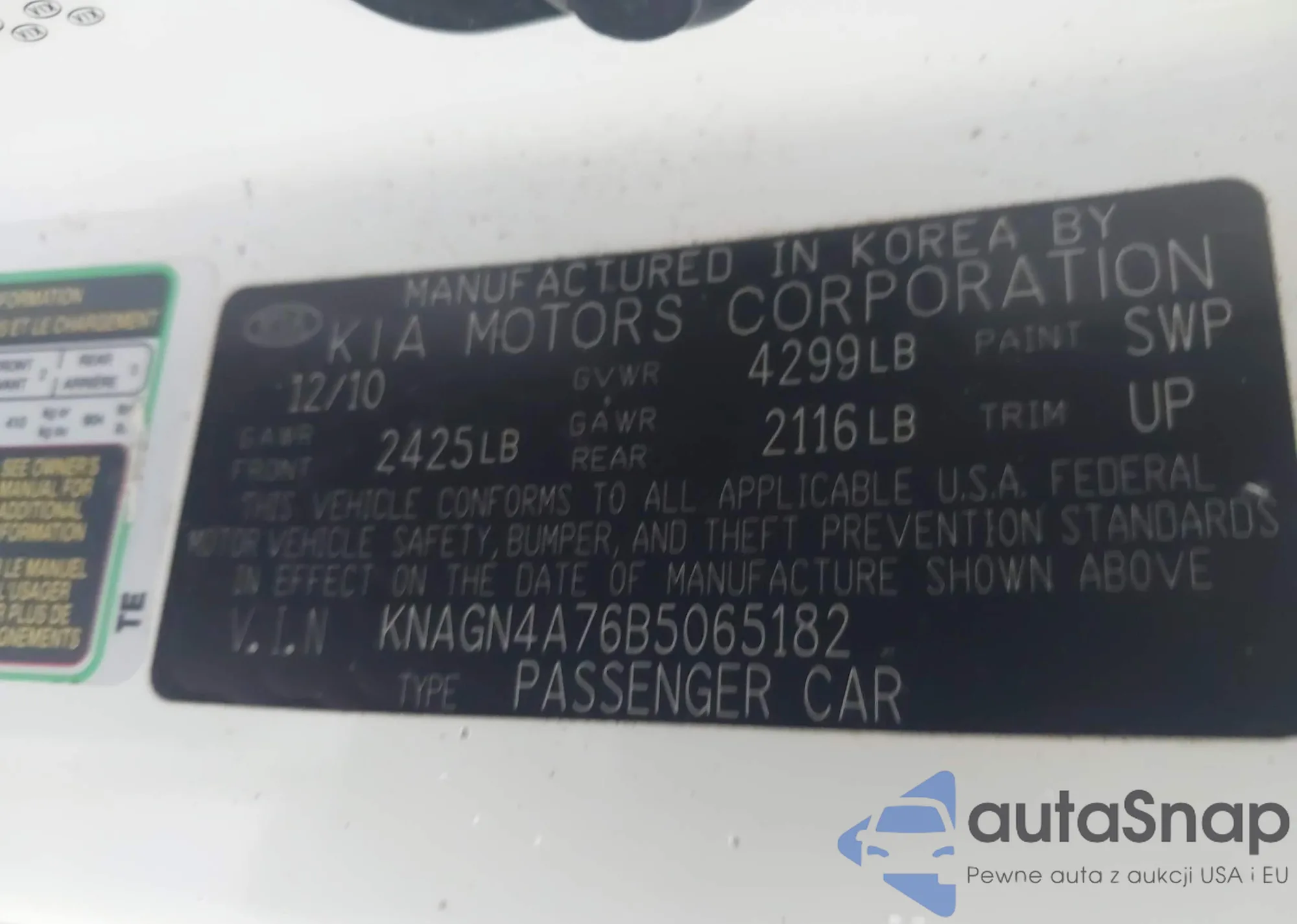 • VIN KNAGN4A76B5065182