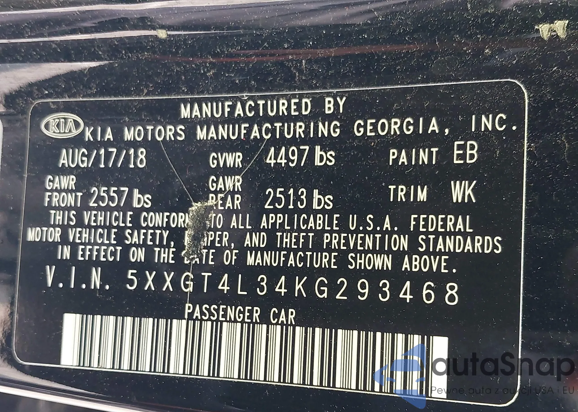 • VIN 5XXGT4L34KG293468