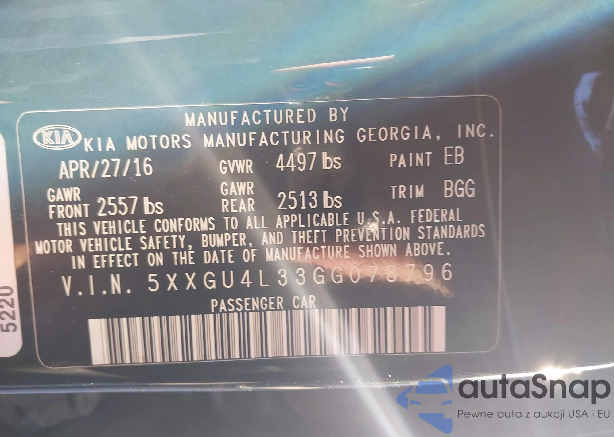 • VIN 5XXGU4L33GG078796