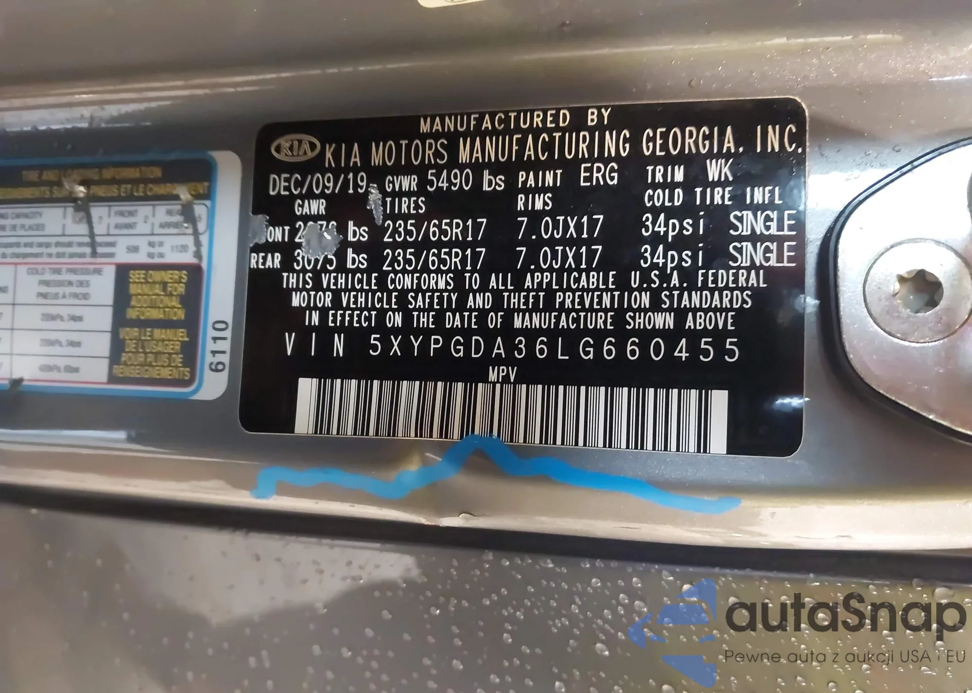 • VIN 5XYPGDA36LG660455