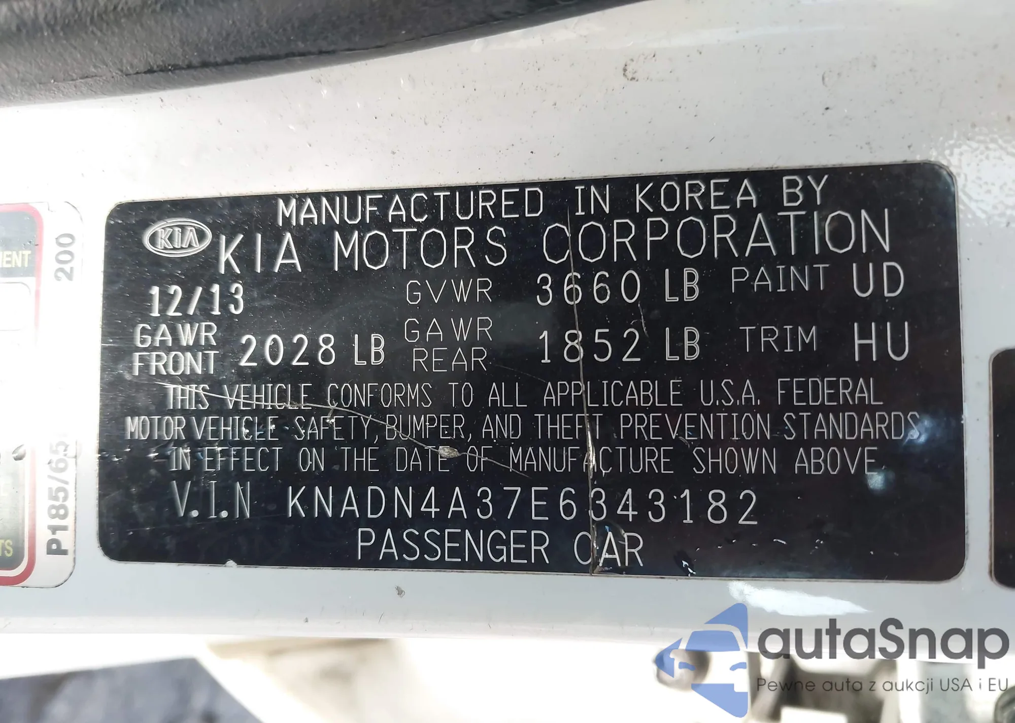 • VIN KNADN4A37E6343182