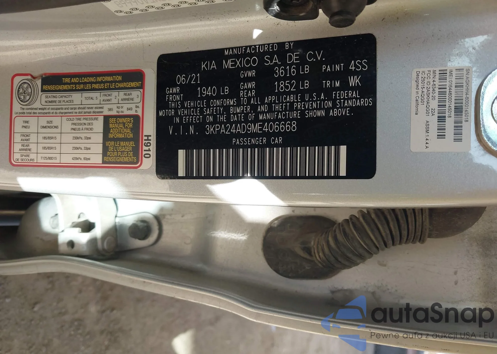 • VIN 3KPA24AD9ME406668