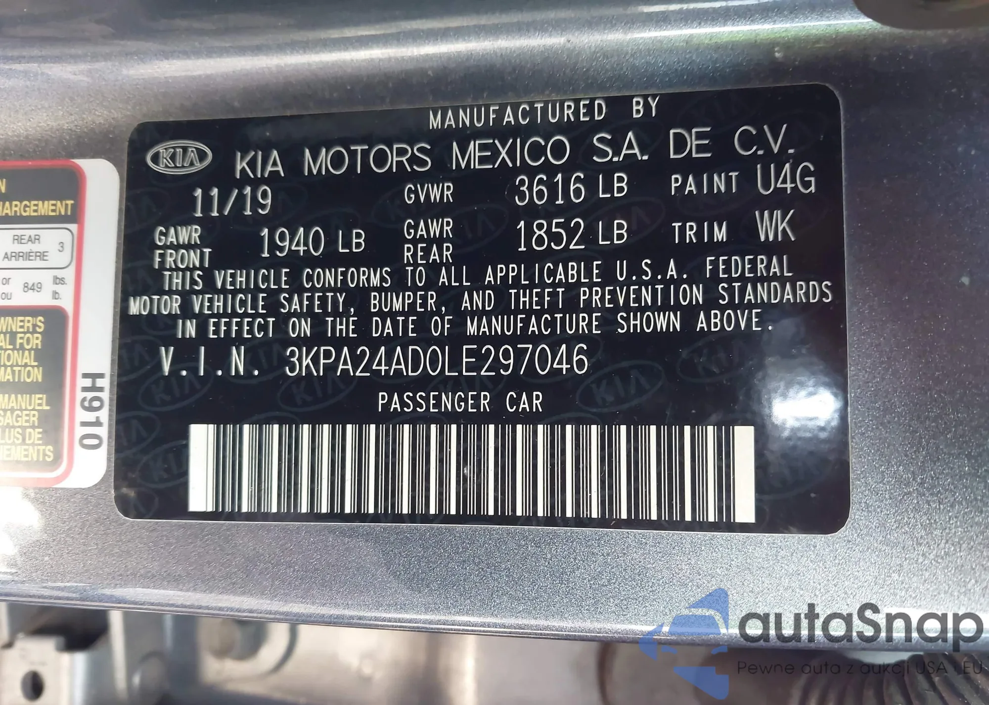 • VIN 3KPA24AD0LE297046