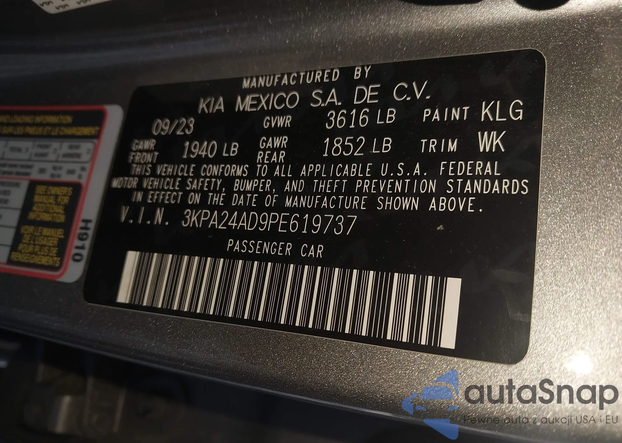 LOT: 44129691 VIN: 3KPA24AD9PE619737