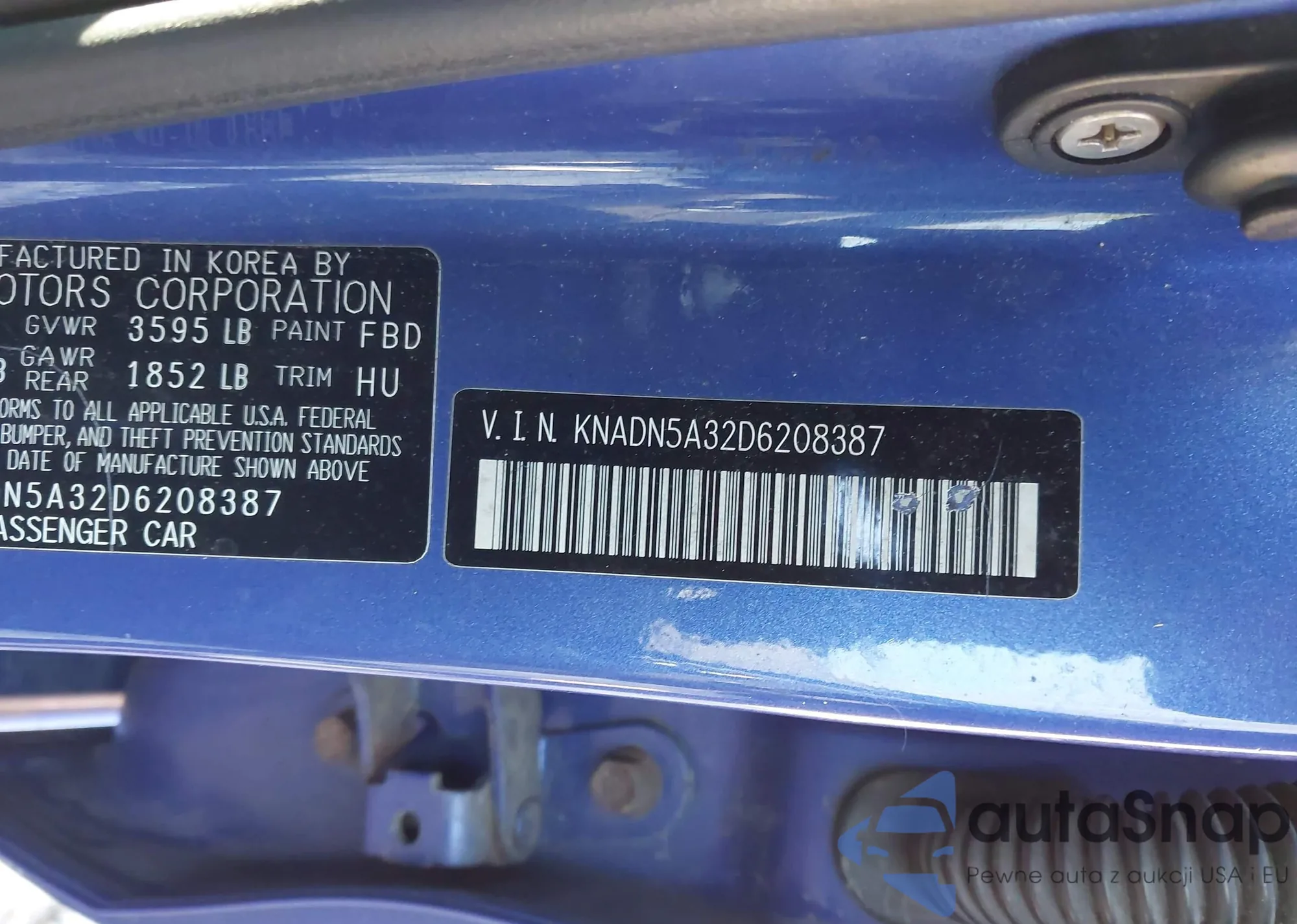 • VIN KNADN5A32D6208387