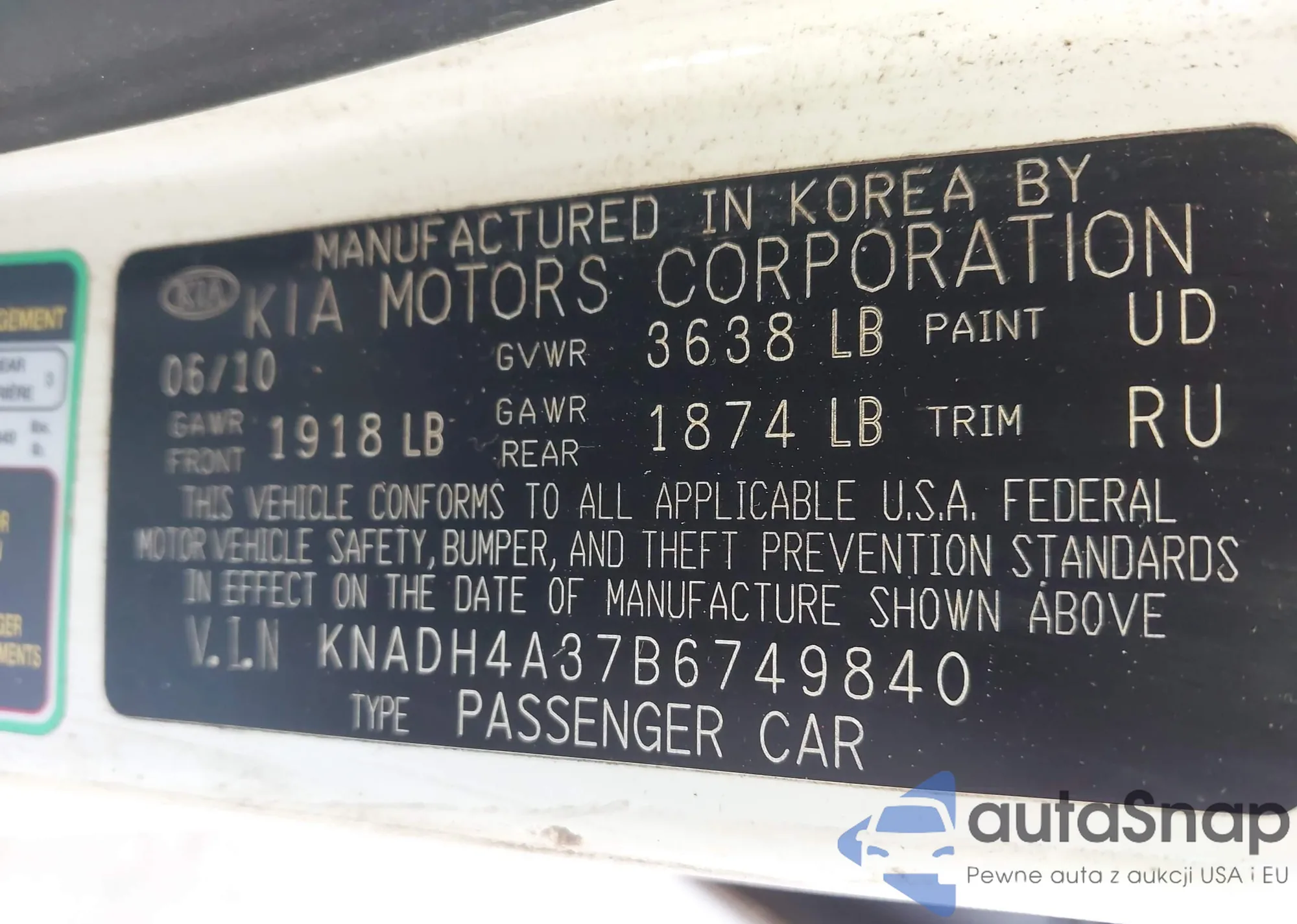 • VIN KNADH4A37B6749840