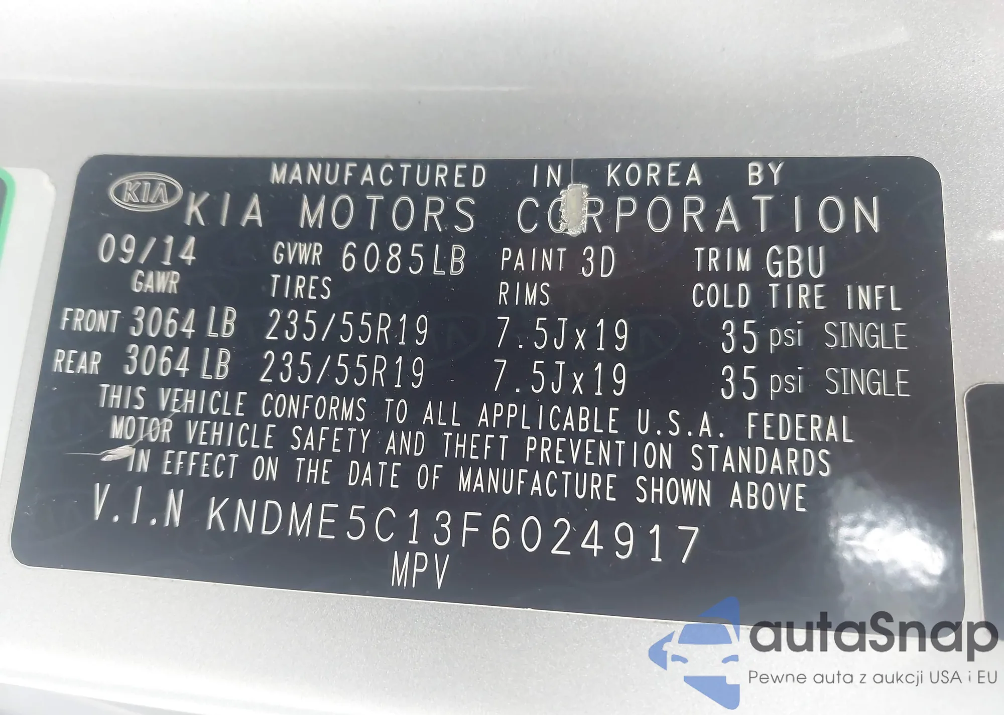 • VIN KNDME5C13F6024917