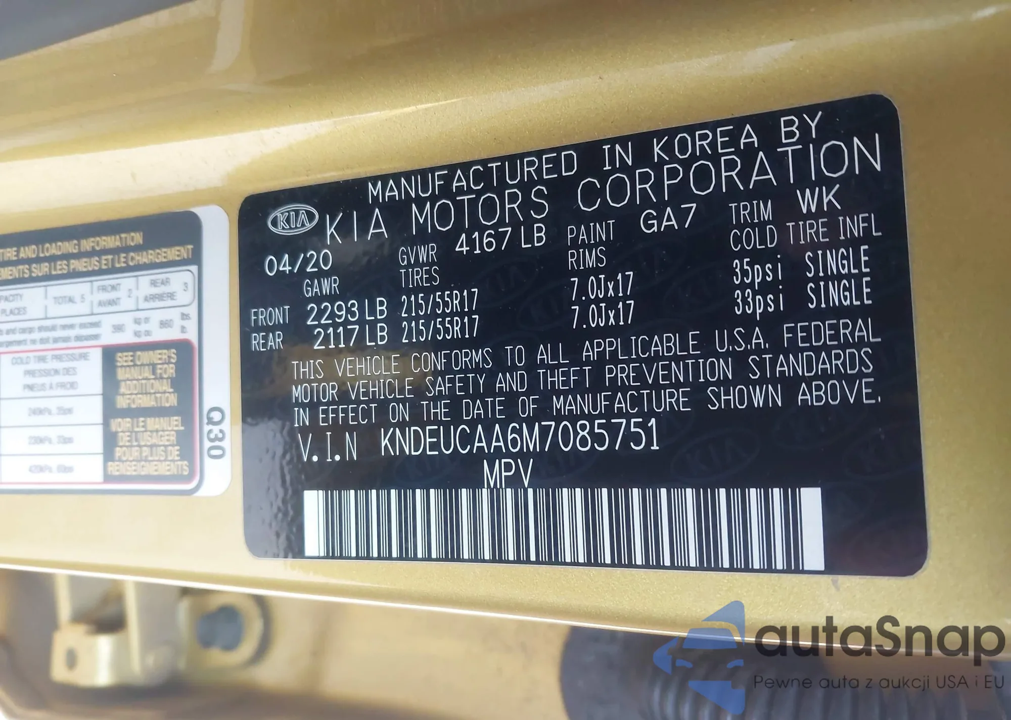 • VIN KNDEUCAA6M7085751