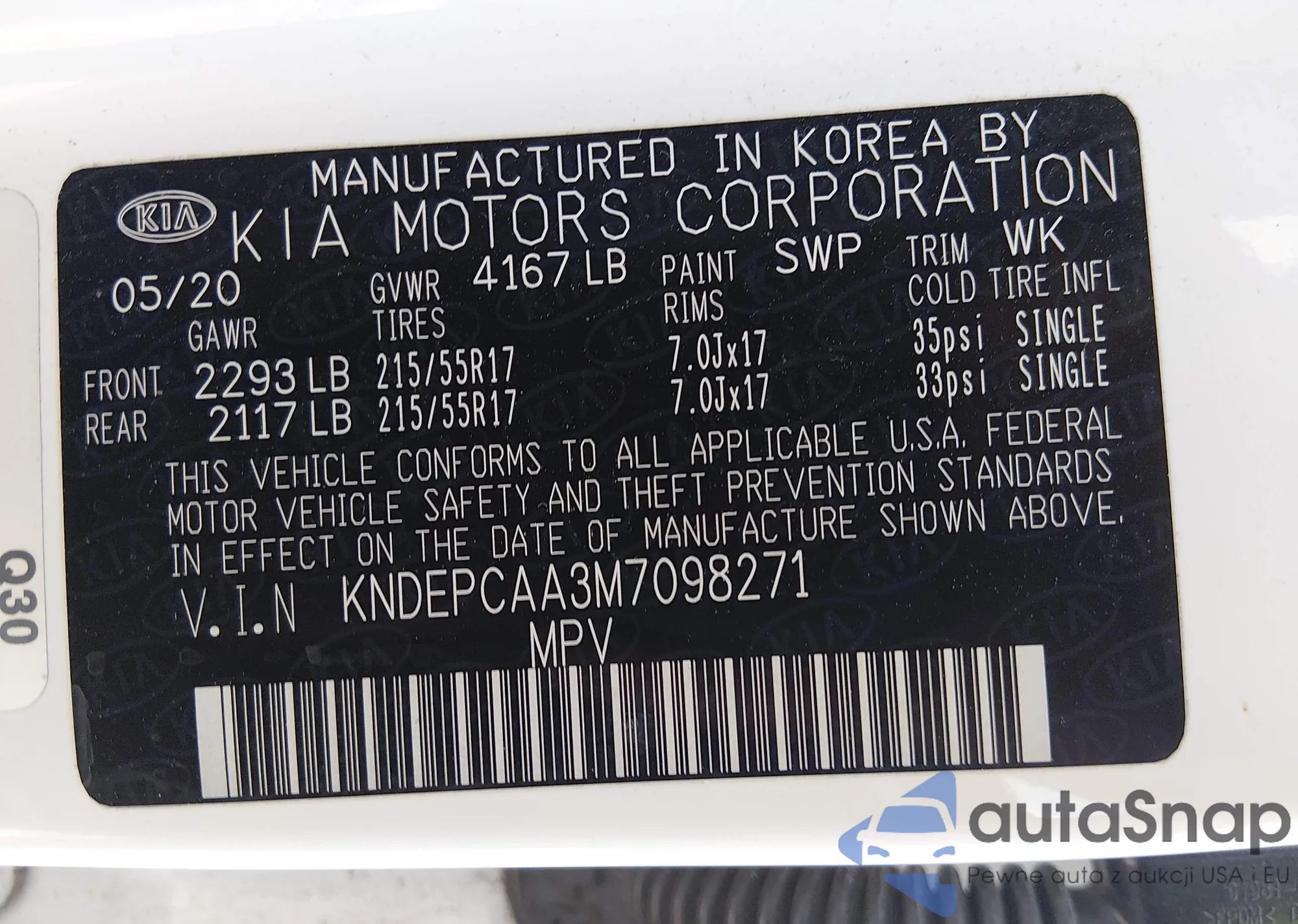 • VIN KNDEPCAA3M7098271