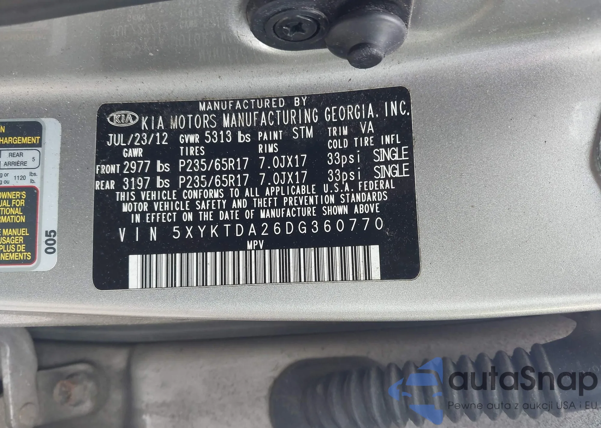 • VIN 5XYKTDA26DG3607