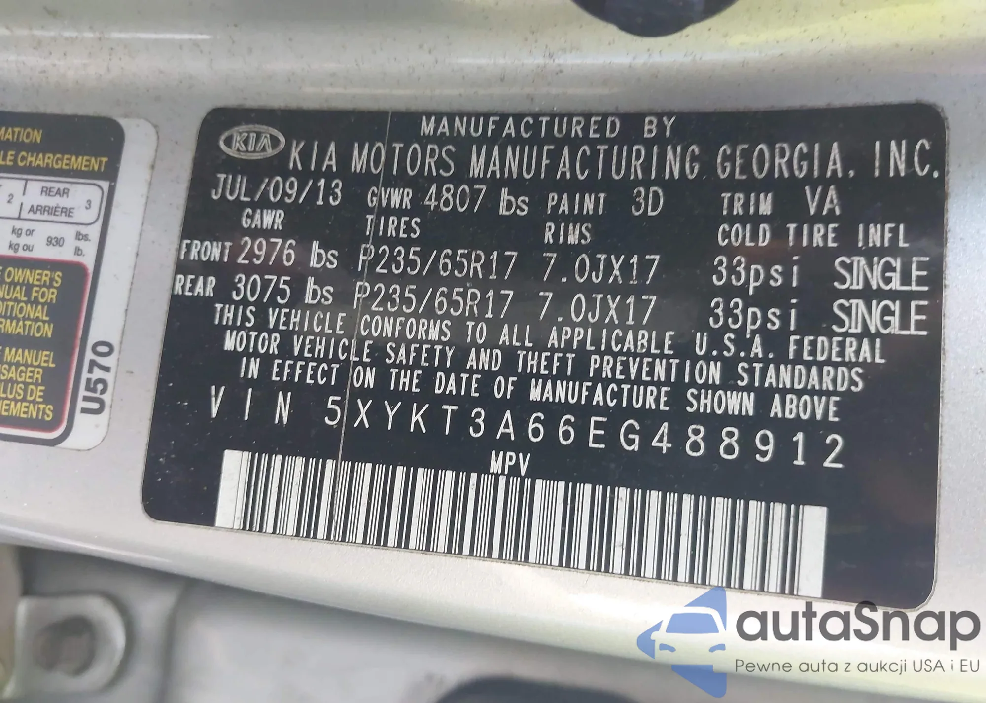 • VIN 5XYKT3A66EG488912