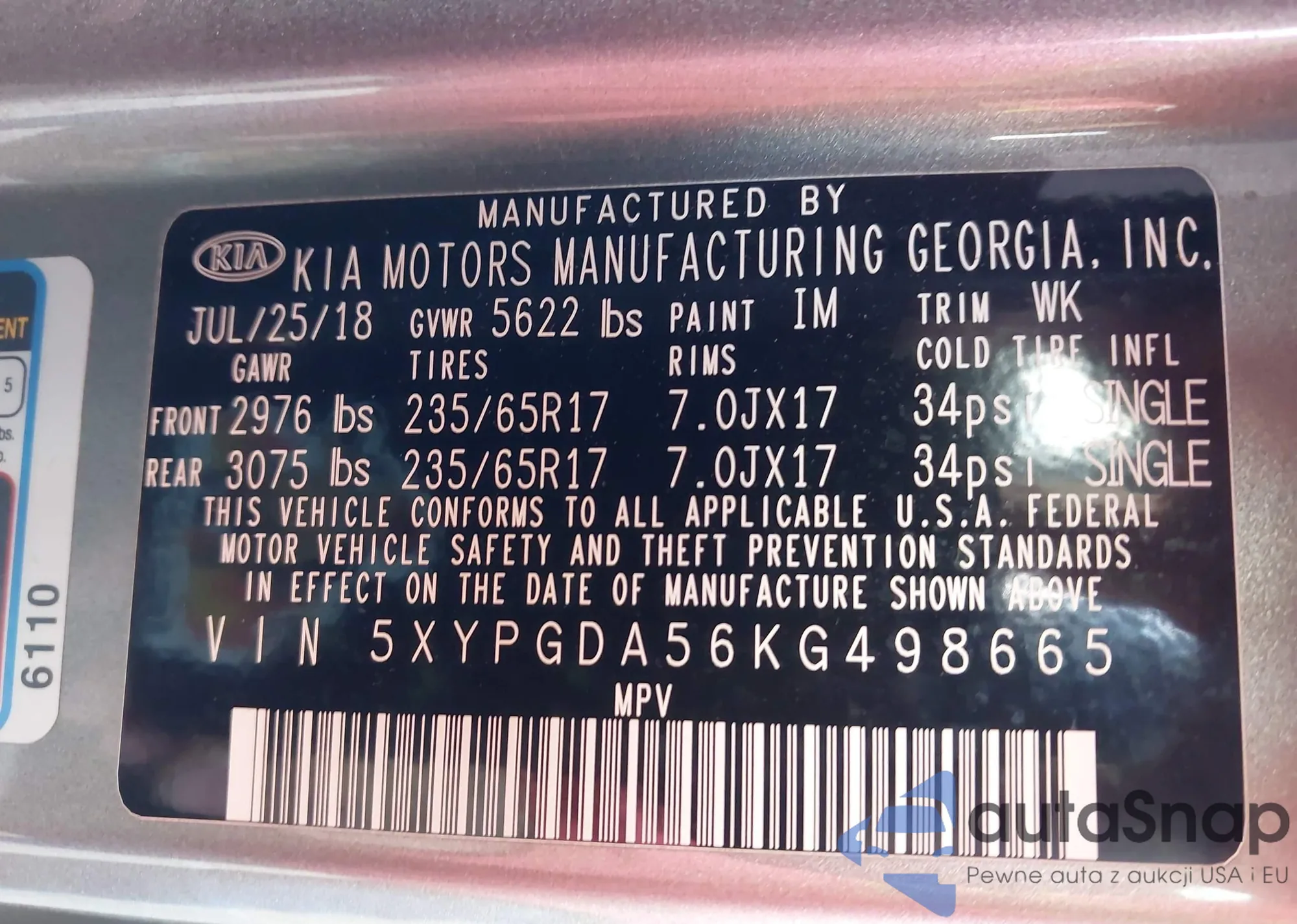 • VIN 5XYPGDA56KG498665