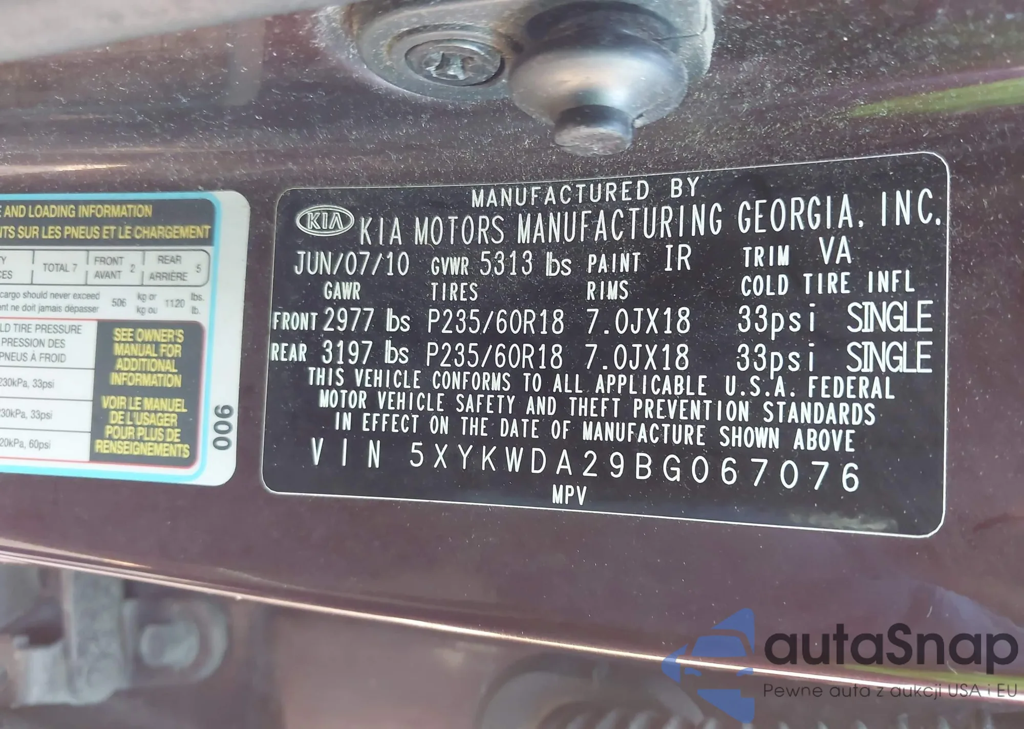 • VIN 5XYKWDA29BG067076