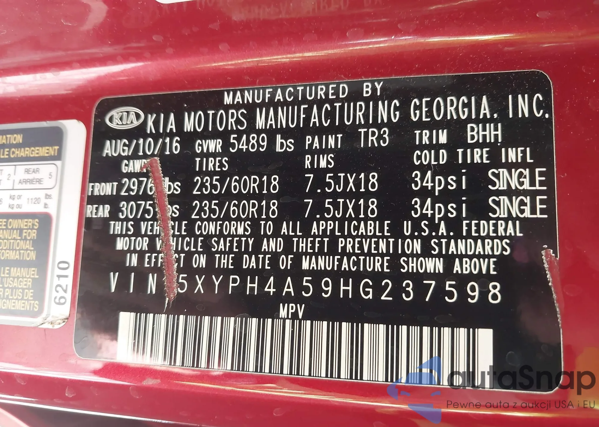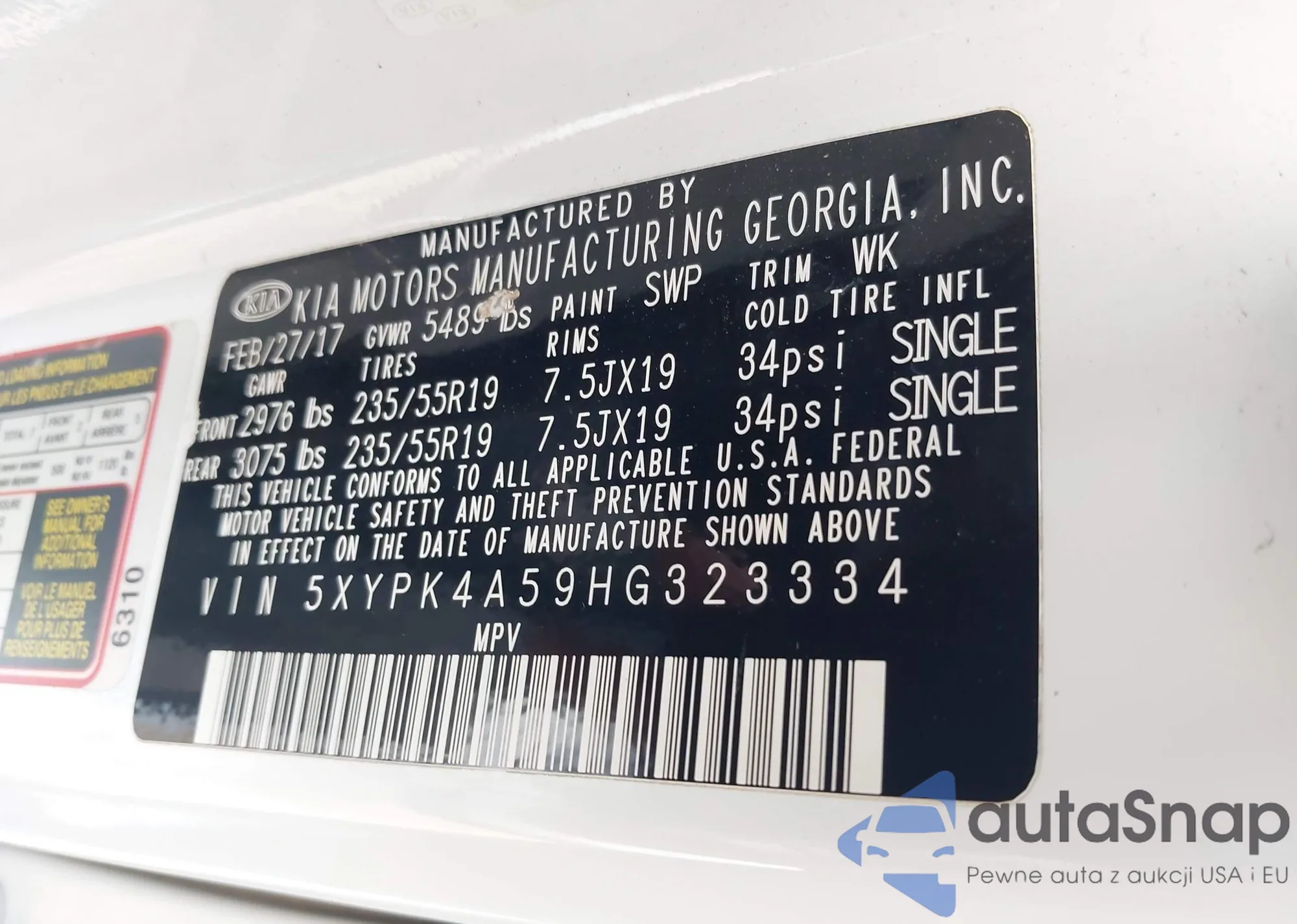 • VIN 5XYPK4A59HG323334