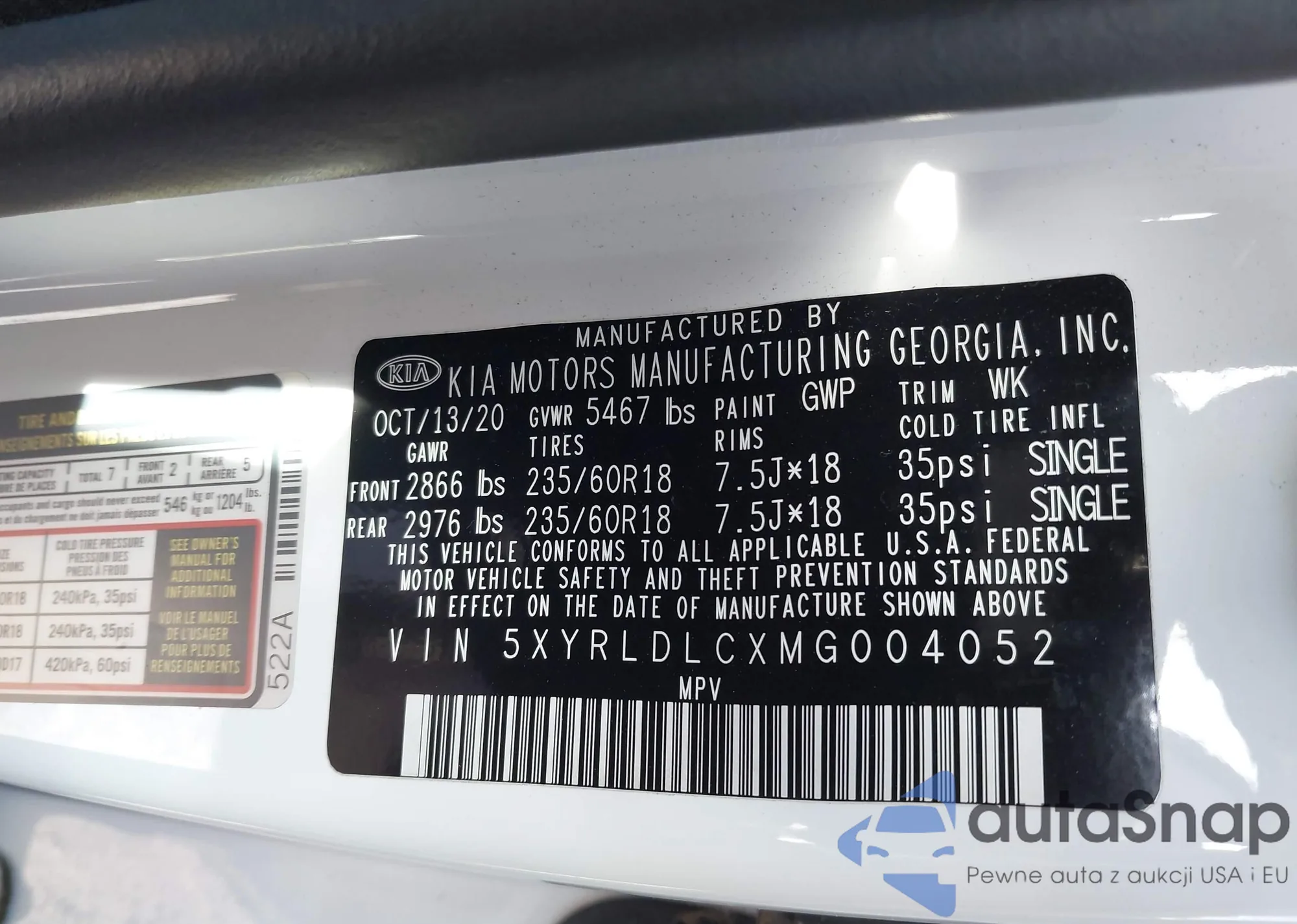 • VIN 5XYRLDLCXMG004052