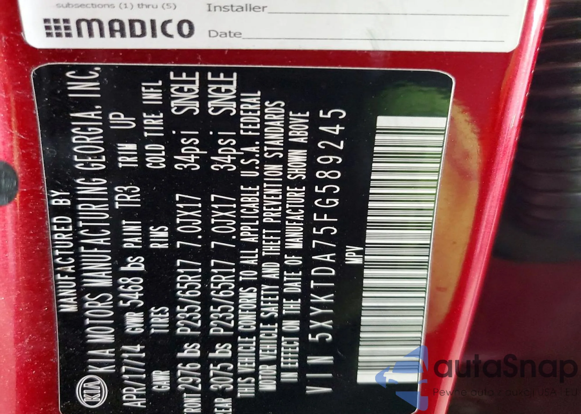 • VIN 5XYKTDA75FG589245
