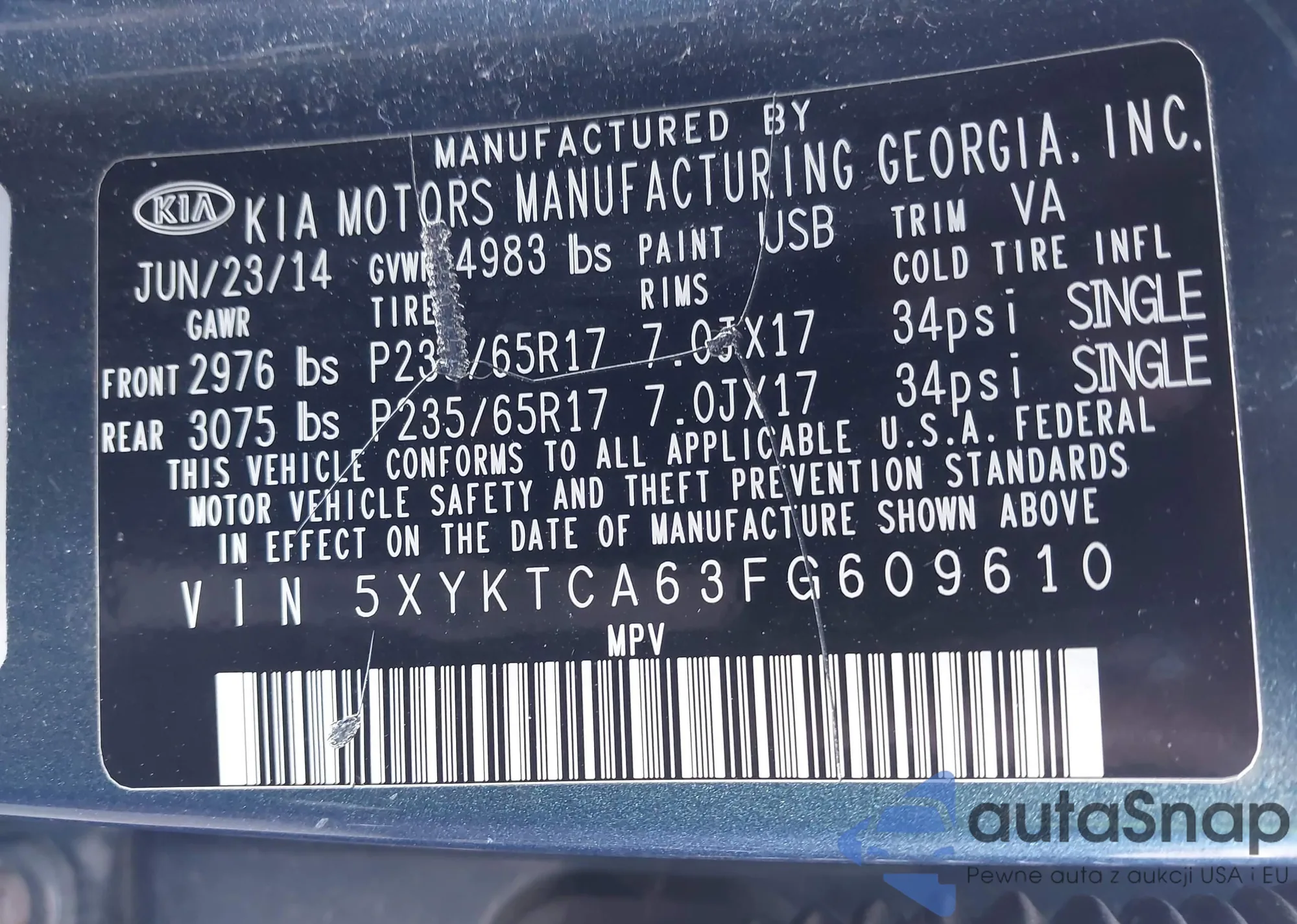 • VIN 5XYKTCA63FG609610