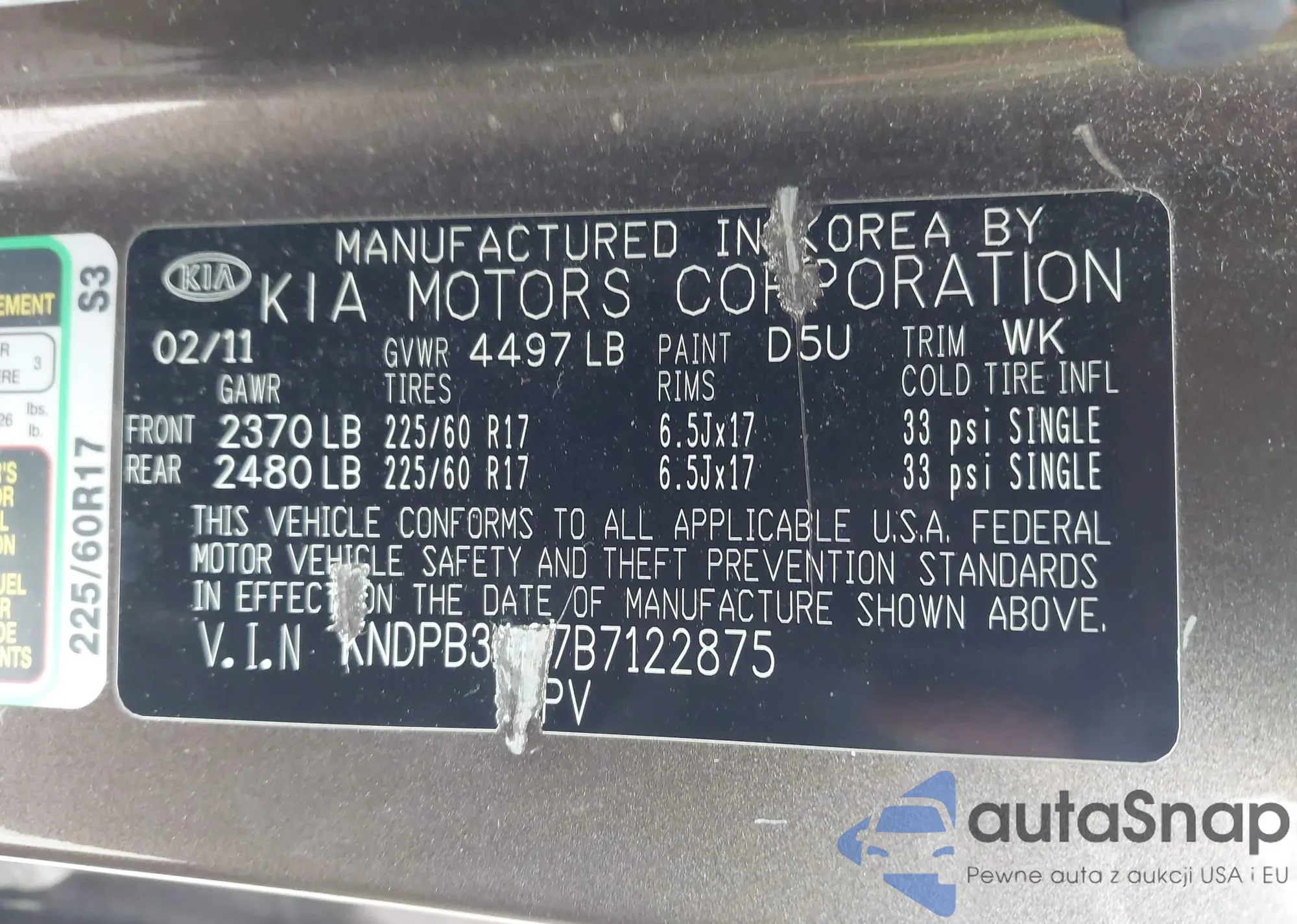 • VIN KNDPB3A27B7122875