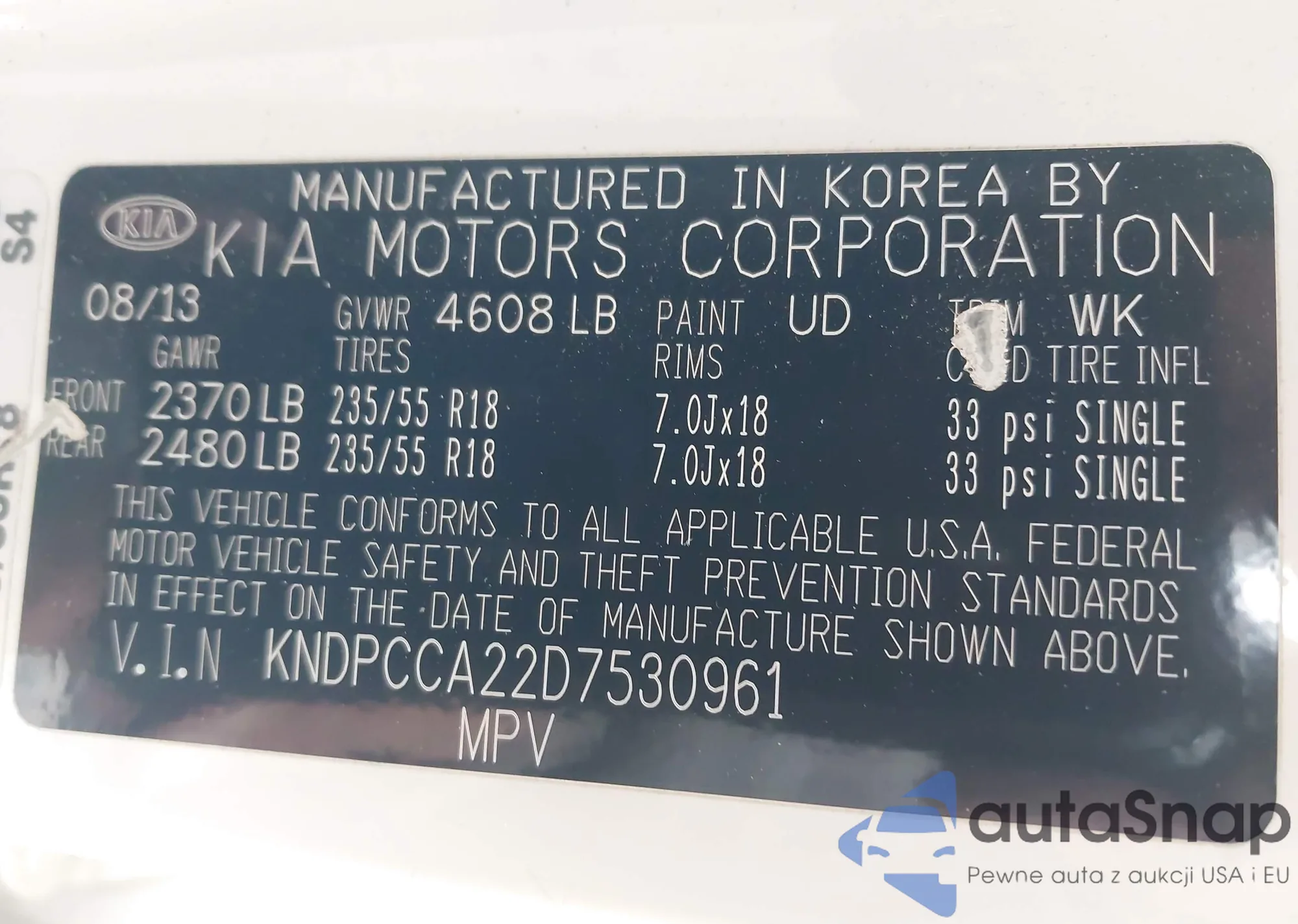 • VIN KNDPCCA22D7530961