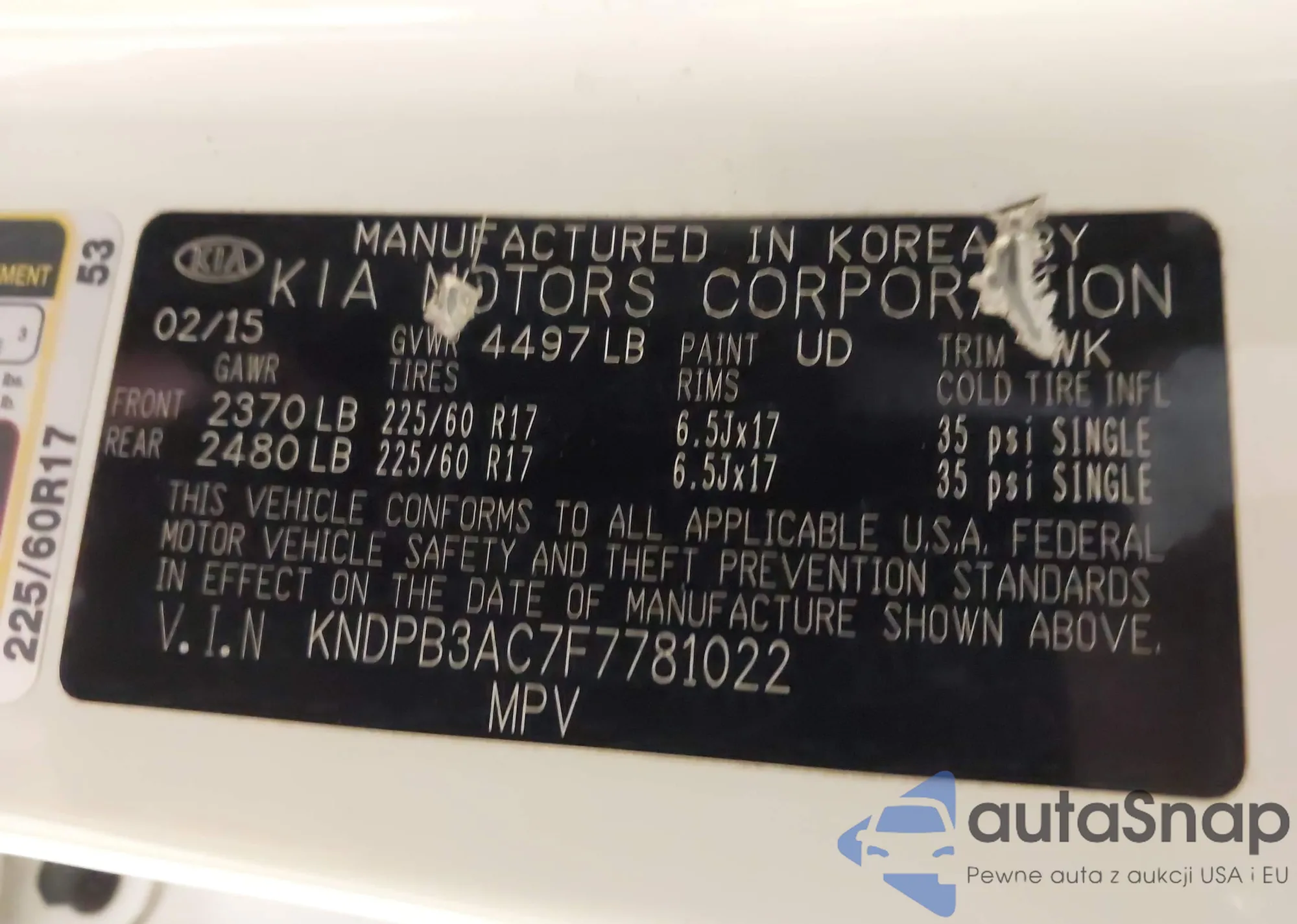 • VIN KNDPBCAC0F7726492