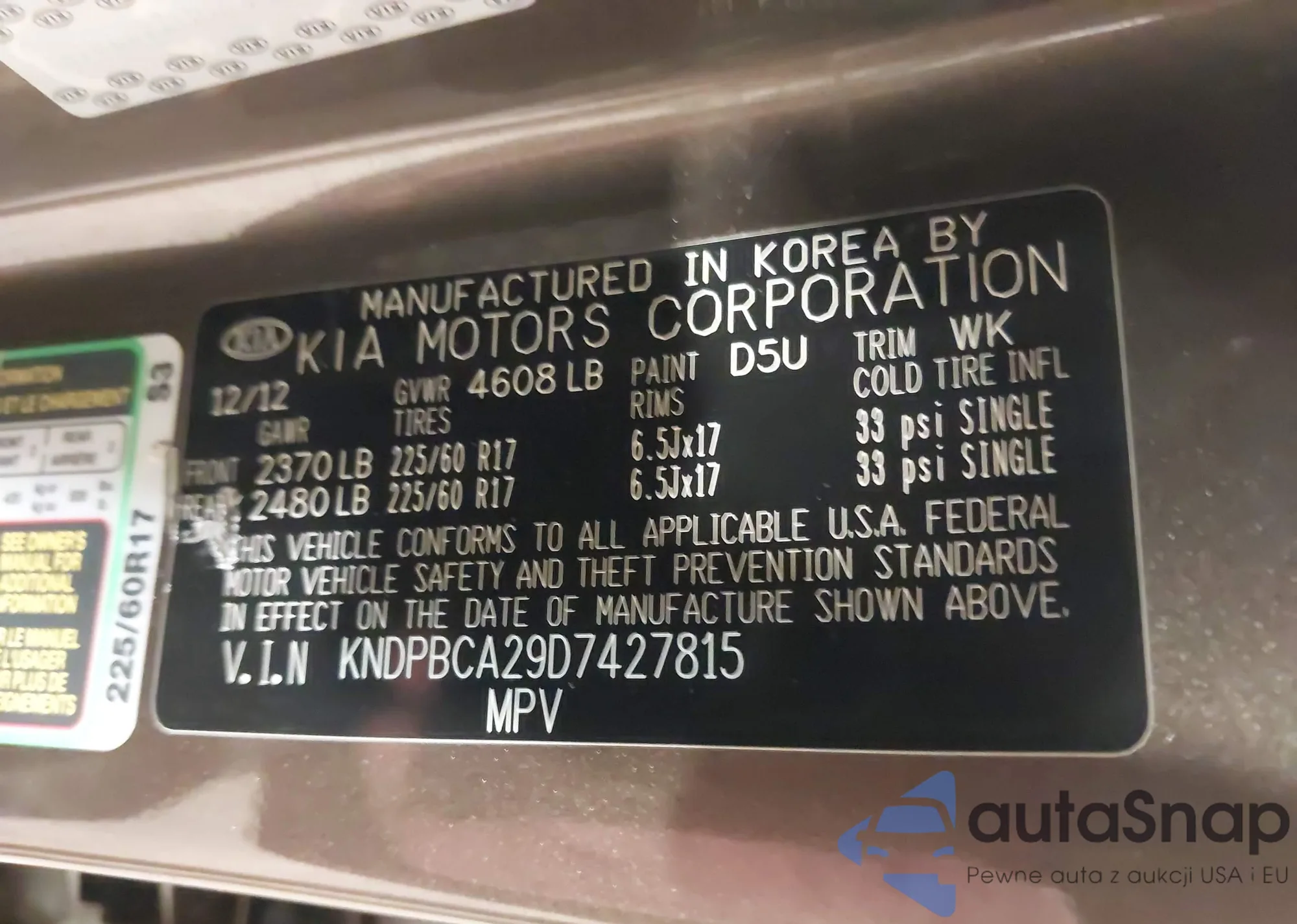 • VIN KNDPBCA29D7427815