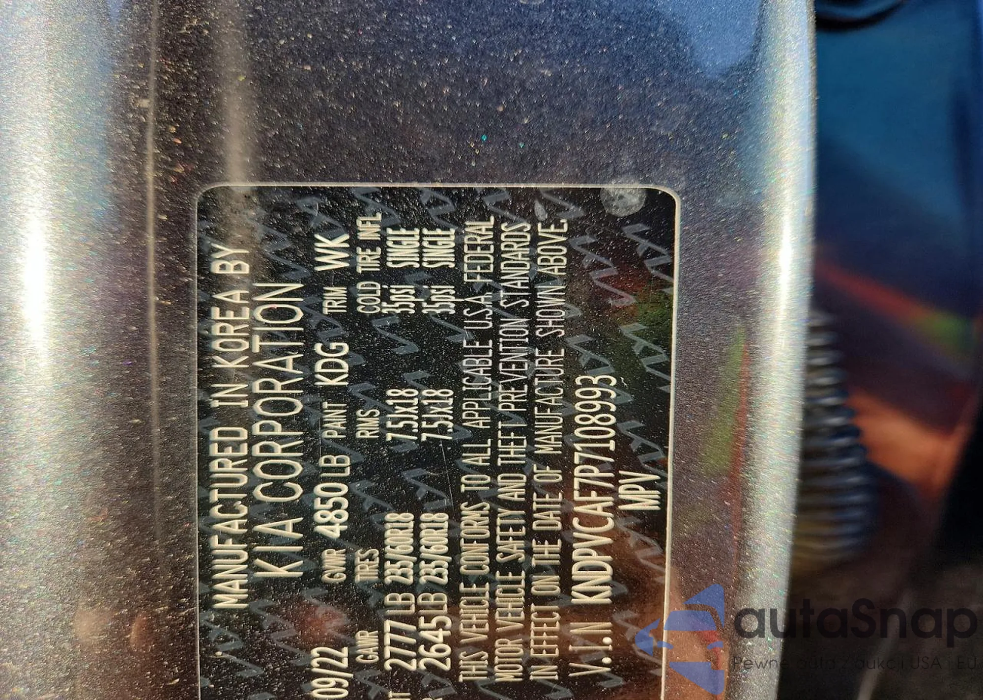 • VIN KNDPVCAF7P7108993