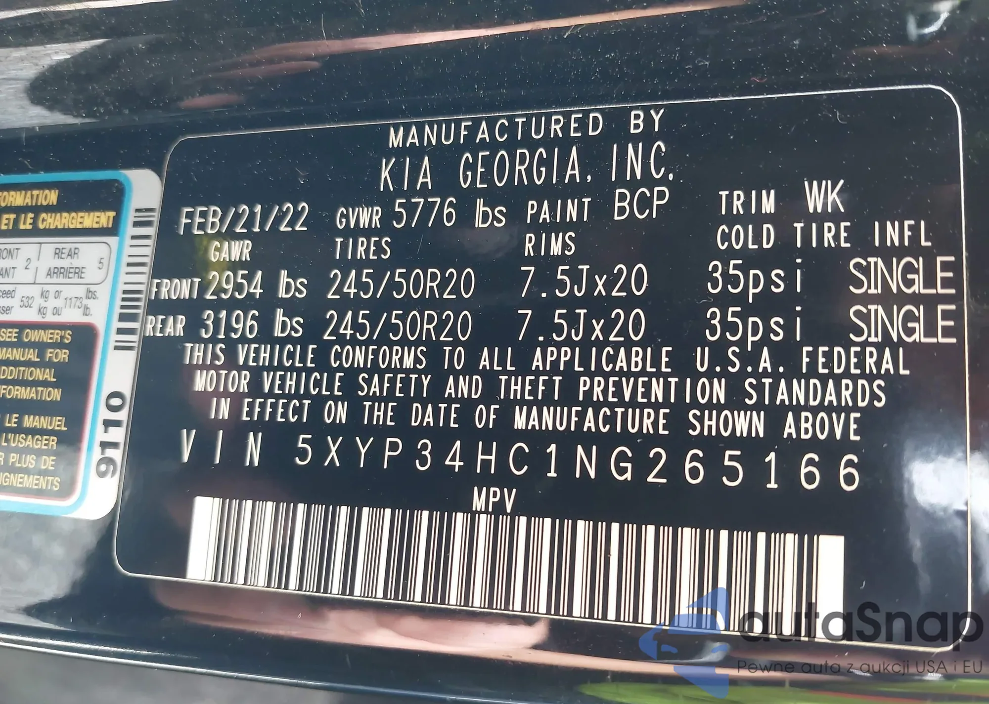 • VIN 5XYP34HC1NG265166