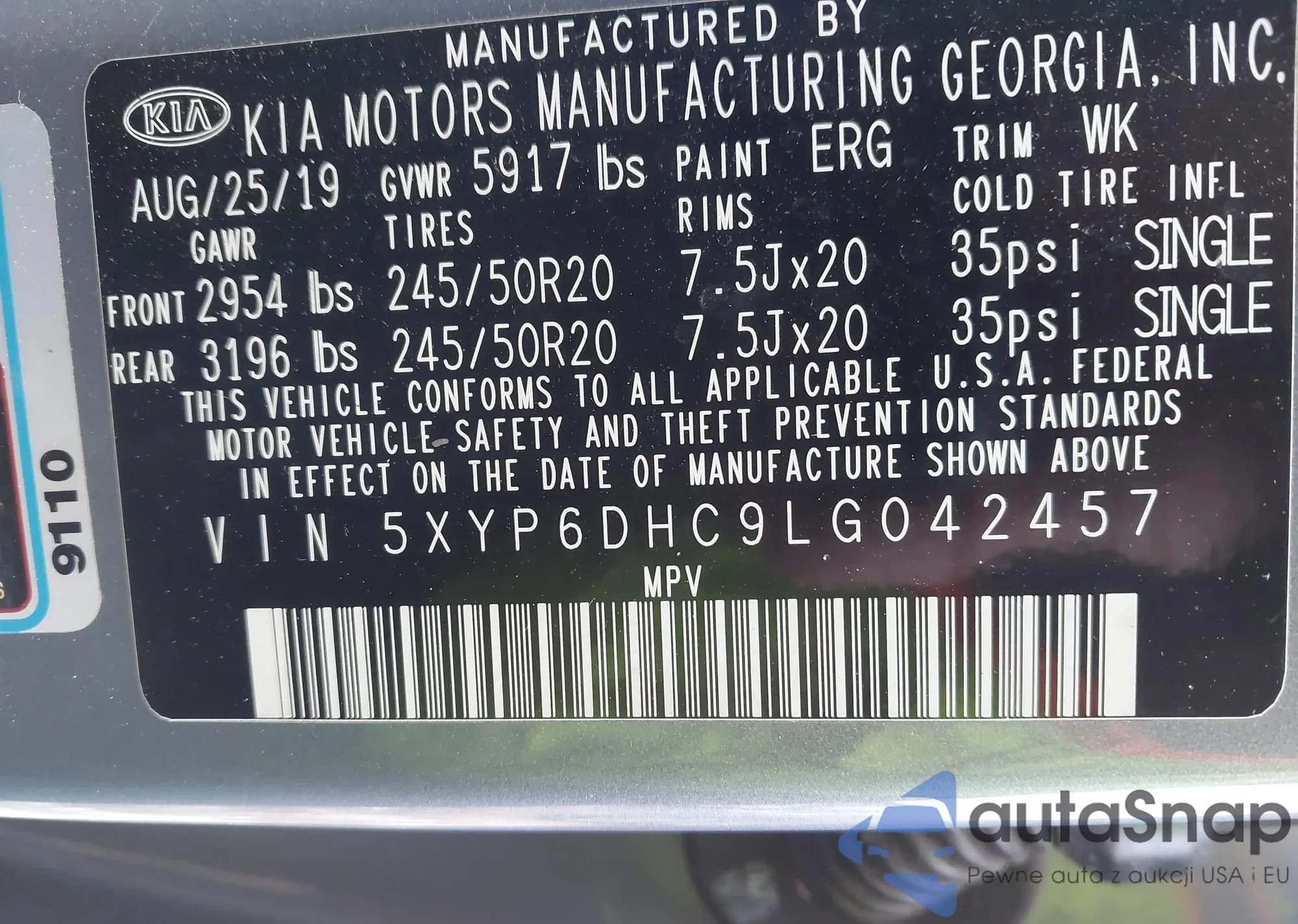 • VIN 5XYP6DHC9LG042457