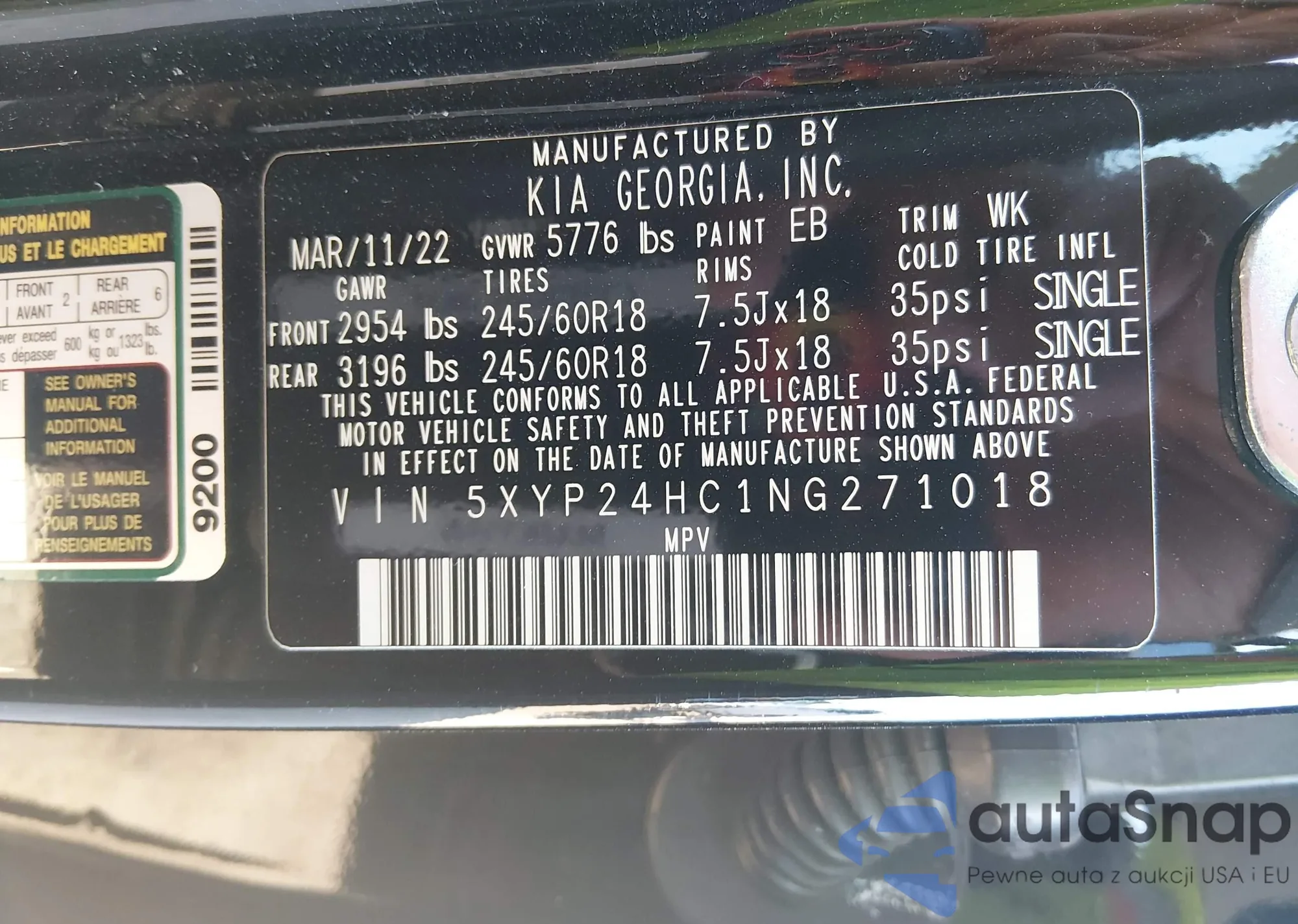 • VIN 5XYP24HC1NG271018