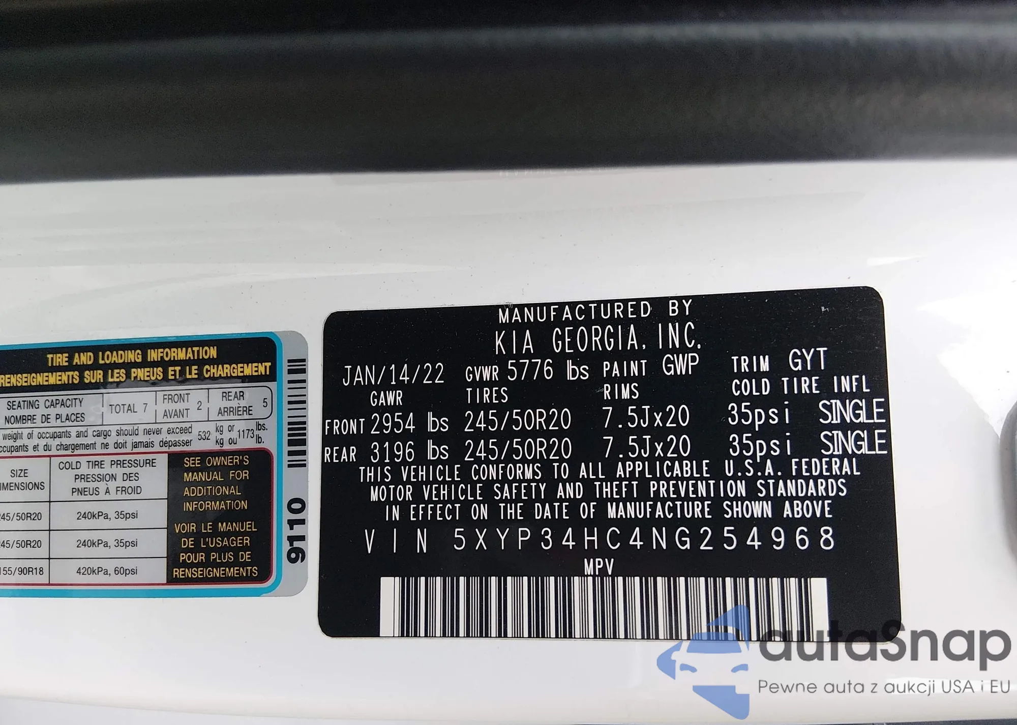 • VIN 5XYP34HC4NG254968