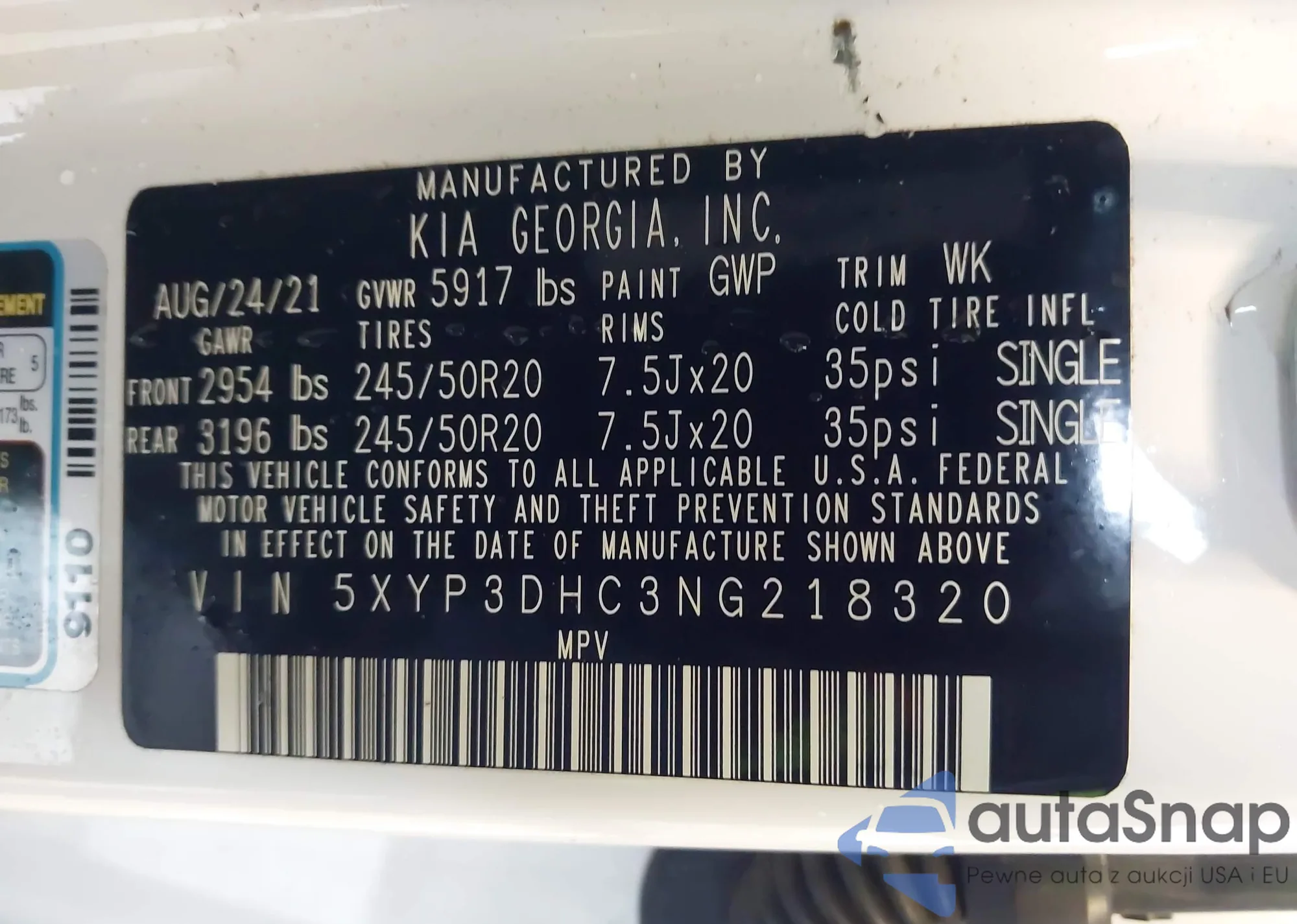 • VIN 5XYP3DHC3NG218320