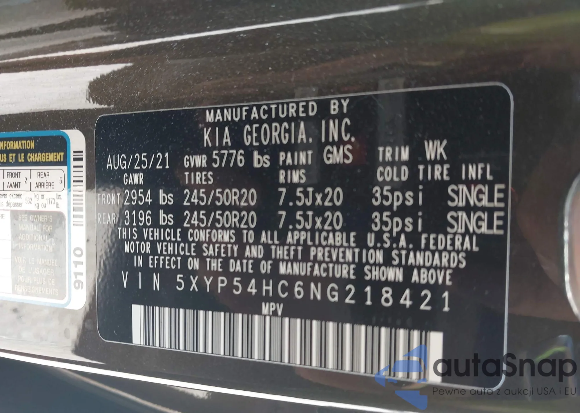 • VIN 5XYP54HC6NG218421