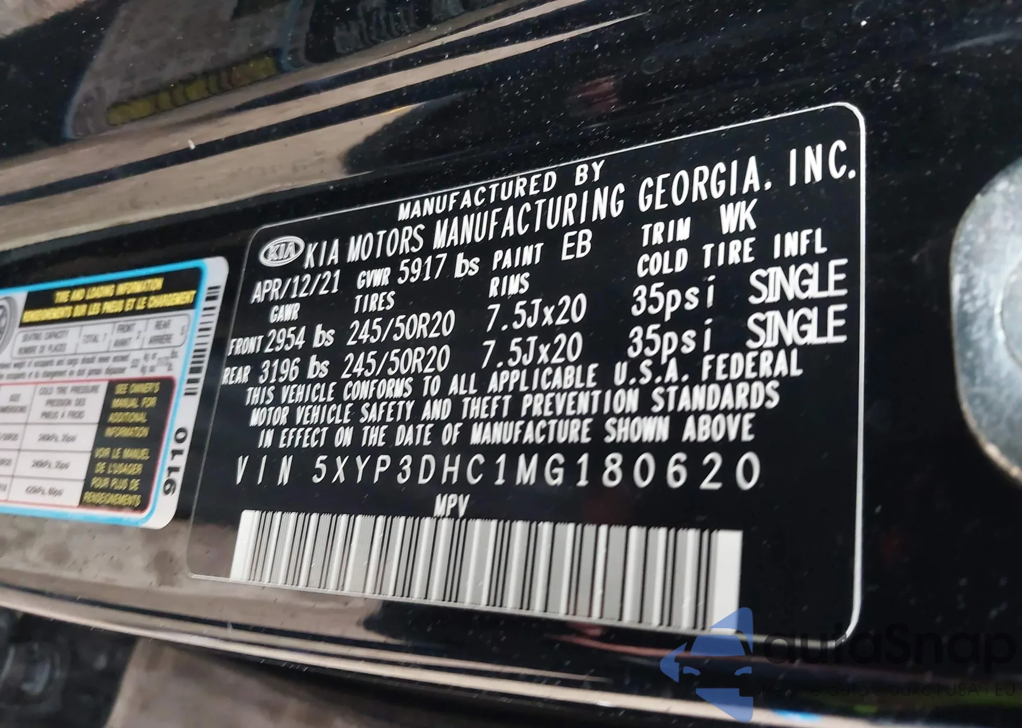 LOT: 43937034 VIN: 5XYP3DHC1MG180620
